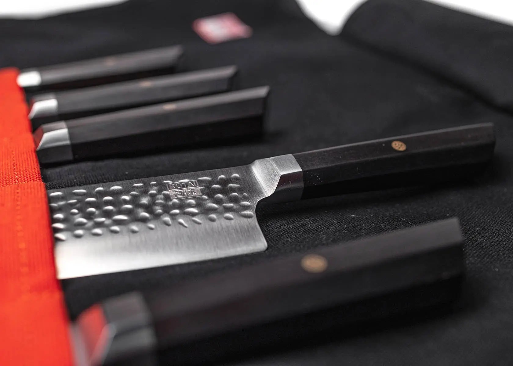 Die KOTAI-Reisemessertasche aus extrem widerstandsfähigem gewachstem Segeltuch und vollnarbigem Leder ist so konzipiert, dass sie lange hält und grossen Köchen durch ihre Karriere folgt.