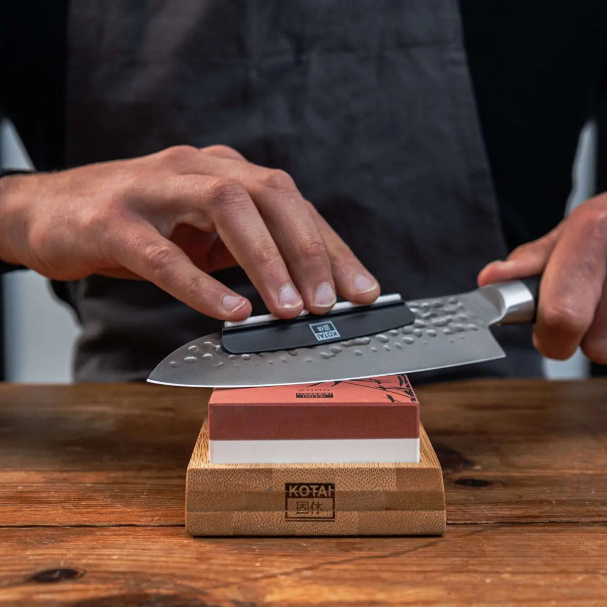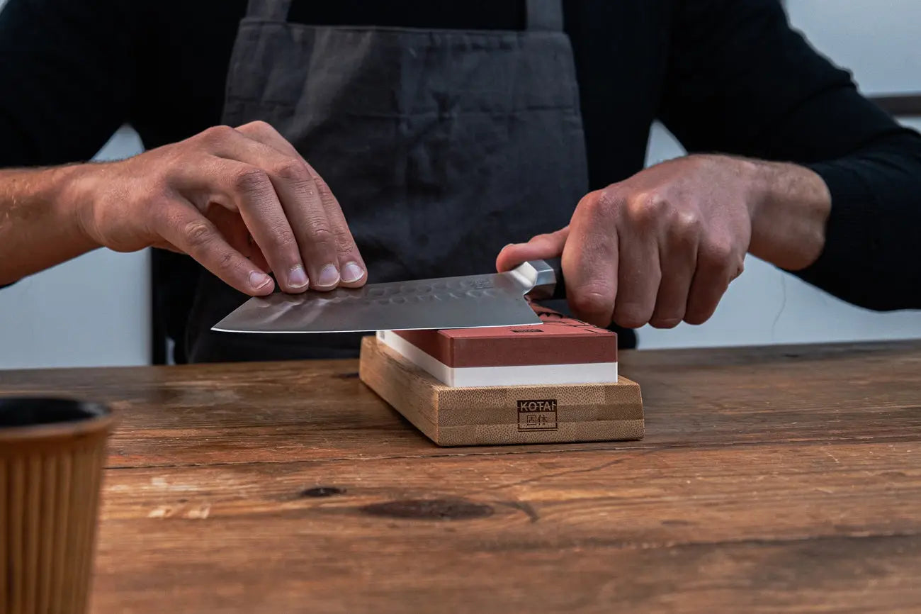 Der KOTAI 2000/6000 Kombi-Schleifstein ist zur Stabilität auf einem Gummifuss montiert. Das macht ihn nicht nur sicherer für Ihre Finger, sondern ermöglicht es Ihnen auch, den Schärfwinkel konstant zu halten.