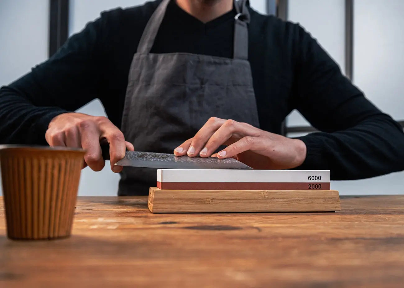 - Die feinere 6000er-Körnung ist ideal zum Auffrischen oder Nachbearbeiten einer messerscharfen Kante