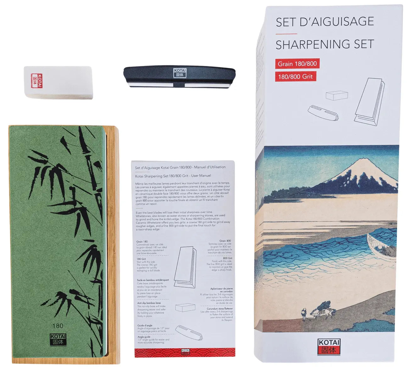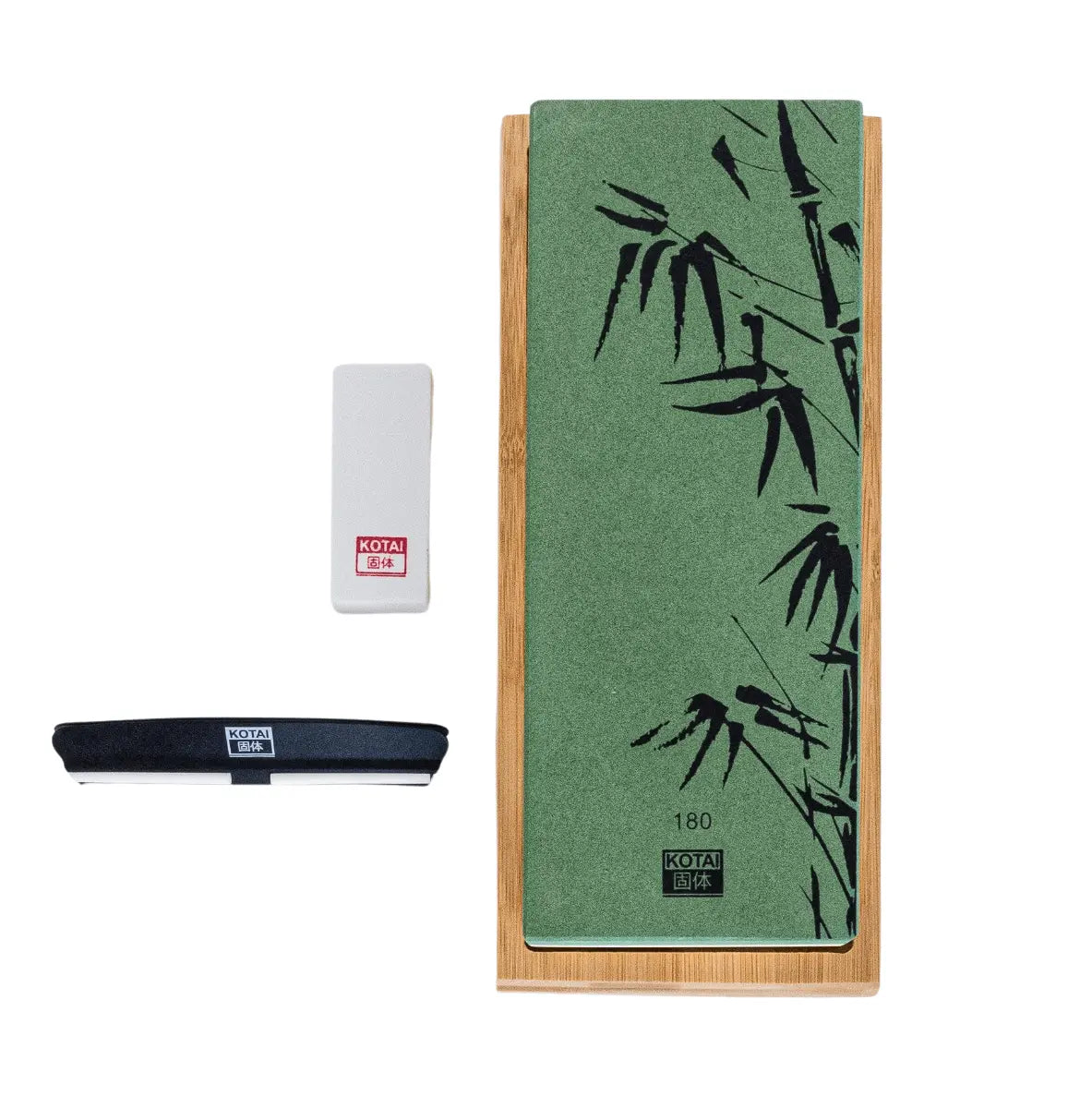 Der KOTAI 180/800 Kombi-Abziehstein bietet zwei Körnungen: eine grobe 180er-Seite zum Abschleifen gröberer Kanten und eine feine 800er-Seite für den letzten Schliff für eine rasiermesserscharfe Kante.