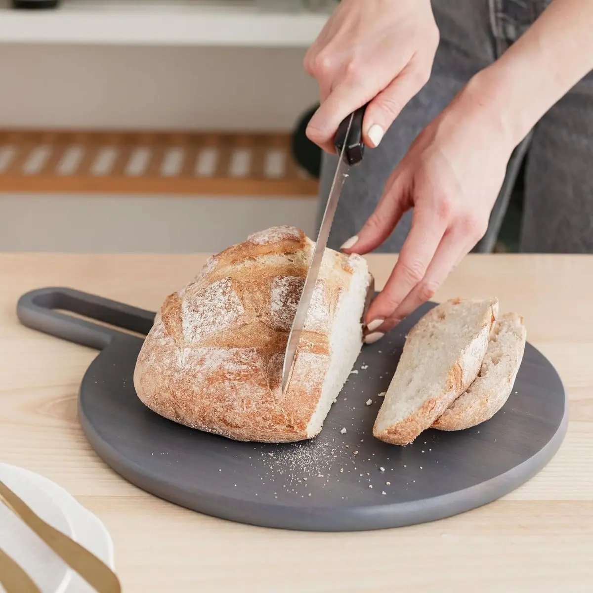 Mit seinen praktischen Massen (34 x 25 cm) eignet sich das Brett sowohl zum Schneiden als auch zum stilvollen Servieren. Die runde Form mit Griff macht es vielseitig einsetzbar – ob beim Brunch, Buffet oder auf dem Esstisch. Dank der Aufhängung lässt es sich dekorativ verstauen und ist dabei jederzeit griffbereit.