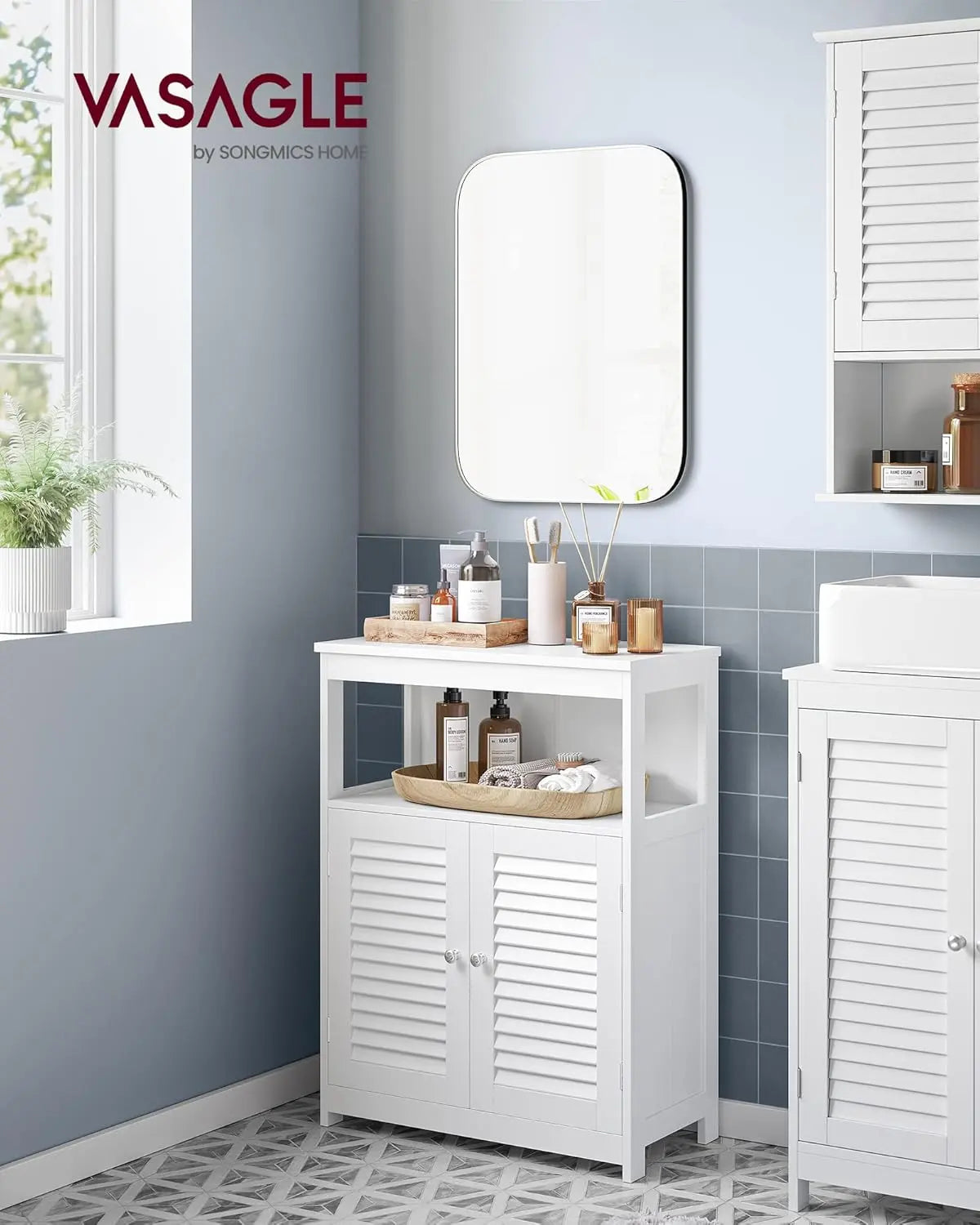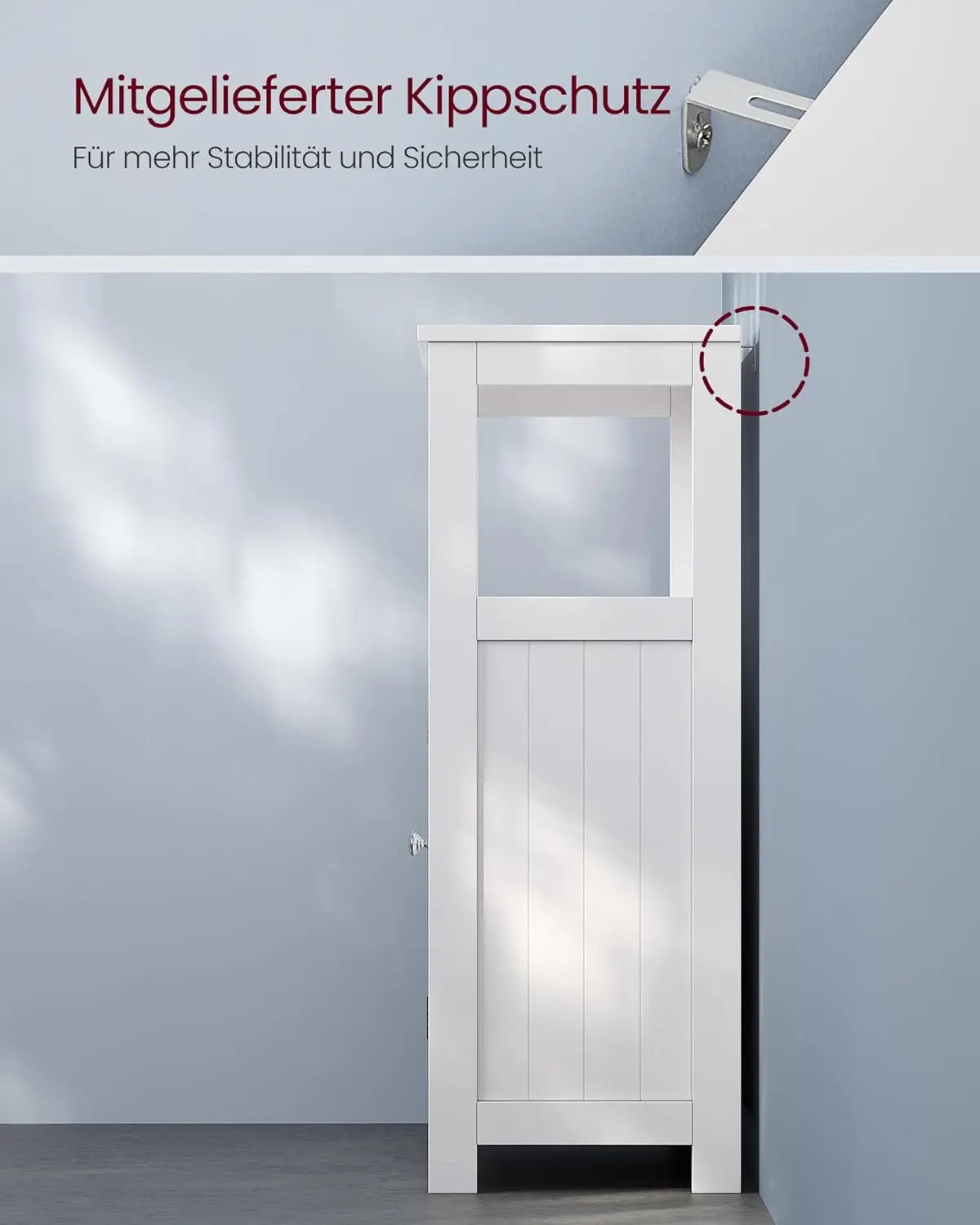 Entdecken Sie den SONGMICS Badezimmerschrank – die perfekte Kombination aus Funktionalität und skandinavischem Design. Mit seinen klaren Linien und der eleganten weissen Farbe bringt dieser Badschrank einen Hauch von Stil in Ihr Zuhause. Die schlichten Lamellentüren verleihen ihm eine zeitlose Note, die sich harmonisch in jede Einrichtung einfügt.