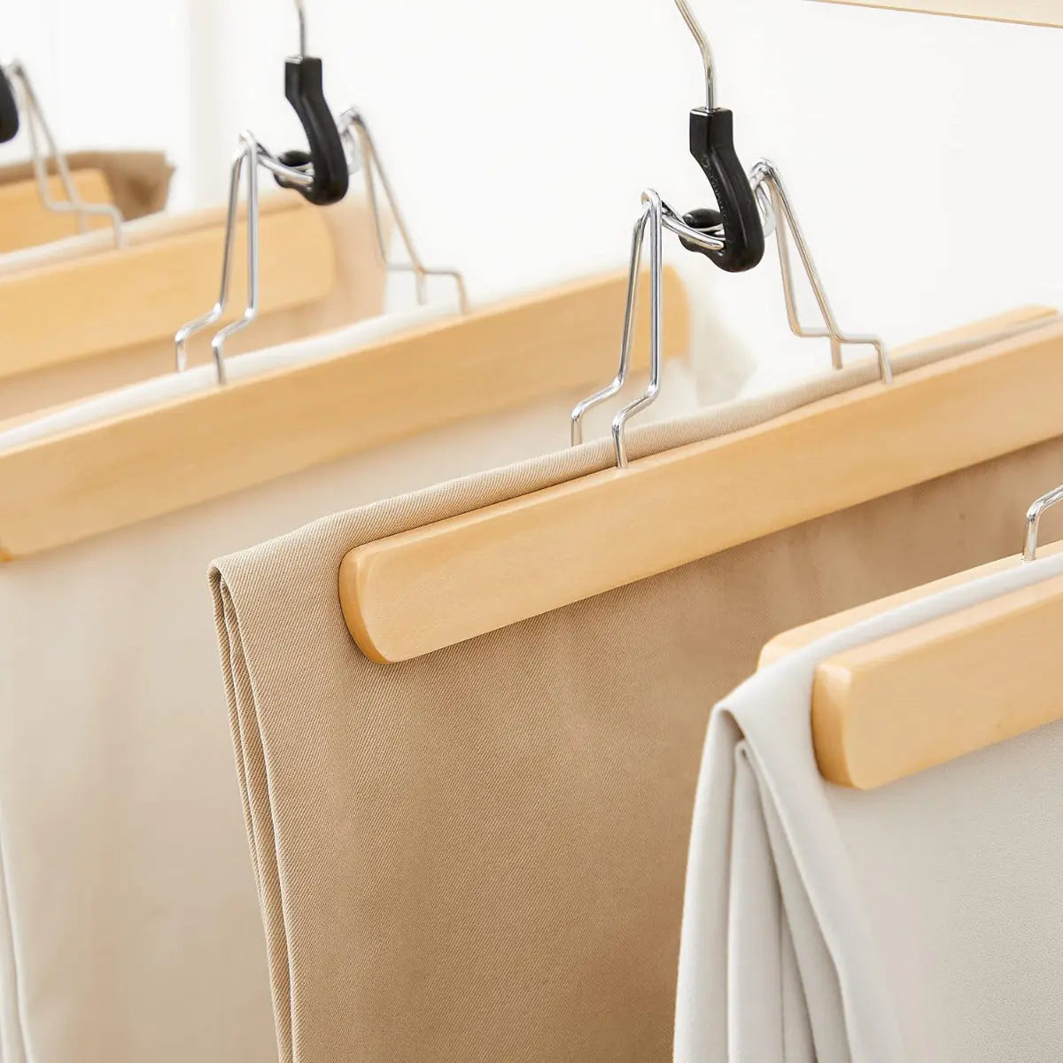 Durch das schlanke, funktionale Design passen die Hosenspanner in jeden Kleiderschrank und sorgen für ein aufgeräumtes, einheitliches Erscheinungsbild. Ideal für Zuhause, für Gästezimmer oder auch den professionellen Einsatz in Hotels oder Boutiquen – diese Holz-Hosenbügel von SONGMICS vereinen Qualität, Langlebigkeit und klassisches Design auf praktische Weise.