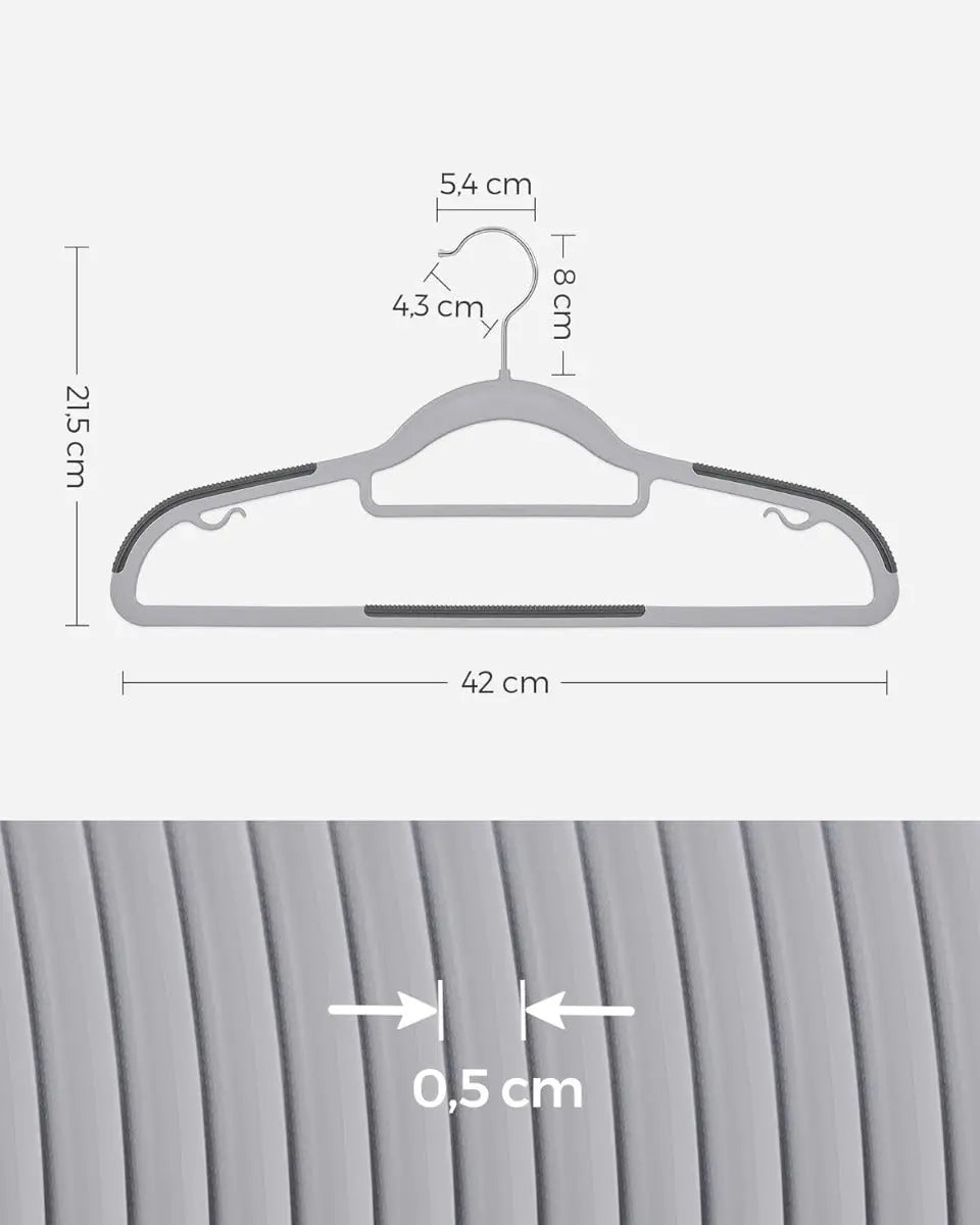 Die zweifarbige Optik in Hellgrau und Dunkelgrau wirkt modern, dezent und passt zu jedem Einrichtungskonzept. Ob im Schlafzimmer, Ankleidezimmer oder in der Boutique – die SONGMICS Kleiderbügel sind ein praktischer Helfer für alle, die mehr aus ihrem Stauraum herausholen möchten.