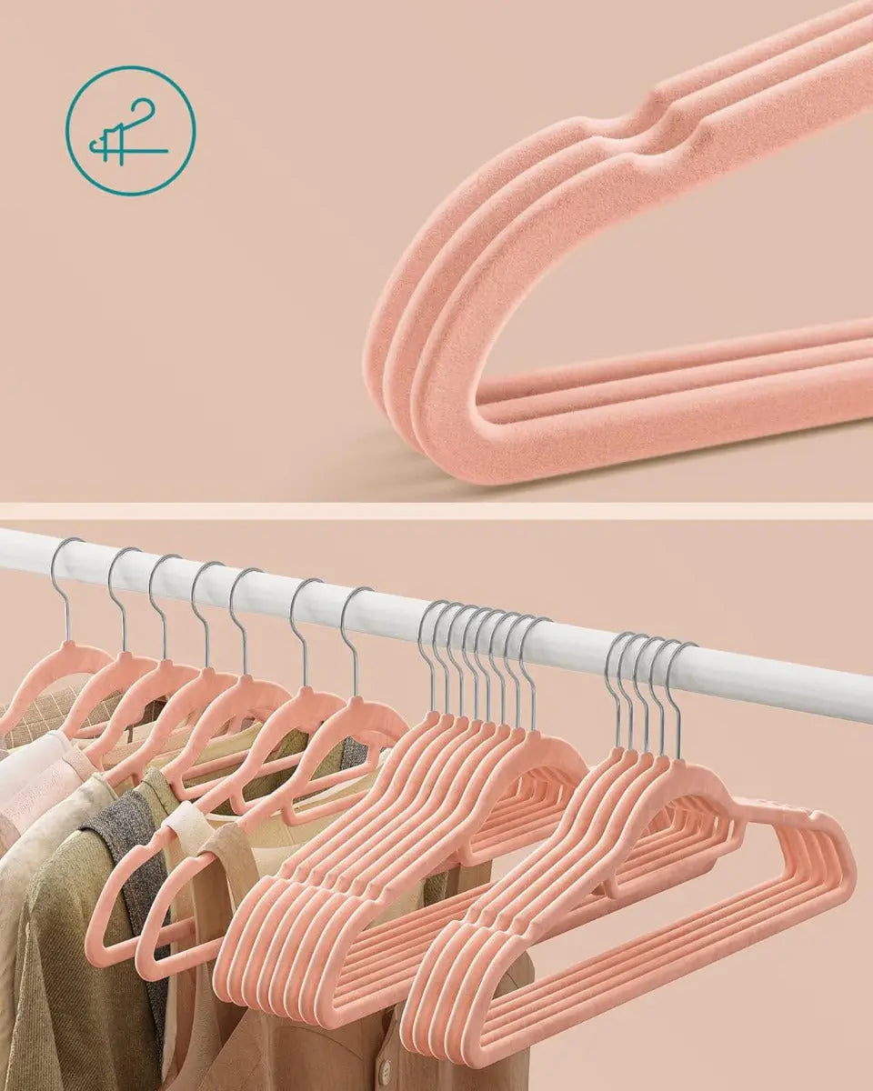 SONGMICS 50er Set Samt-Kleiderbügel – platzsparend, 360° drehbarer Haken, U-förmige Öffnung, 41,5 cm breit – hellrosa, rutschfest & formschonend für Alltag & Business