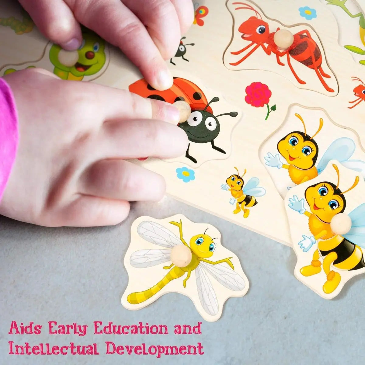 Das 4er-Set der hölzernen Steckpuzzles für frühes Lernen ist speziell für Kinder ab 2 Jahren entwickelt worden. Jedes Puzzle ist mit bunten, ansprechenden Illustrationen versehen, die unterschiedliche Themen abdecken, darunter Wildtiere, Zahlen, Fahrzeuge und das Alphabet. Diese Puzzles fördern nicht nur die Hand-Auge-Koordination, sondern helfen auch, das Erkennen von Formen und Buchstaben zu verbessern. Hergestellt aus strapazierfähigem Holz, sind die Puzzles robust genug, um dem intensiven Spiel kleiner Kinder standzuhalten. Die leuchtenden Farben und das taktile Spiel mit den Puzzleteilen machen das Lernen zu einem spassigen Erlebnis, das Kinder immer wieder geniessen werden.