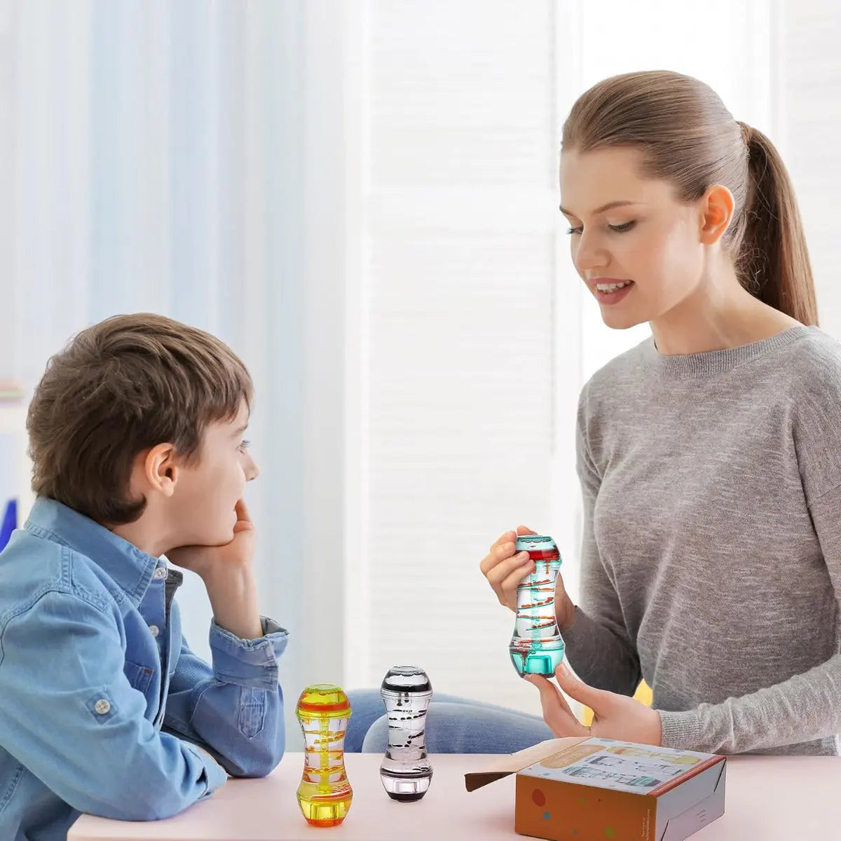 Unsere Spiral Timer enthalten ungiftiges Öl, was sie zu einer sicheren Wahl für Kinderzimmer, Klassenzimmer und therapeutische Anwendungen macht. Neben ihrer ästhetischen Wirkung dienen sie auch als hilfreiche Werkzeuge für sensorische Aktivitäten, fördern die Konzentration, die Wahrnehmung und eine beruhigende Wirkung. Sie sind mehr als nur Dekoration – sie bieten echten Nutzen in Bildungs- und Therapieumgebungen.