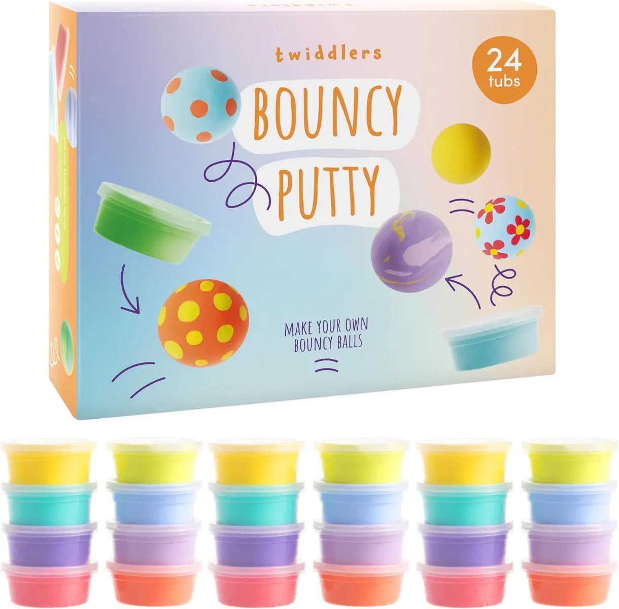 Unser Set aus Bouncy Slime Pots 24 Stück ist ein echtes Highlight für Kinder! Jeder Becher enthält bunten, hüpfenden Schleim, der sich dehnen, quetschen und wie von Zauberhand zurückspringen lässt. Diese einzigartige sensorische Erfahrung sorgt nicht nur für Spass, sondern fördert auch Kreativität und Feinmotorik. Kinder werden es lieben, die besondere elastische und taktile Konsistenz des Putties zu entdecken und sich stundenlang damit zu beschäftigen.