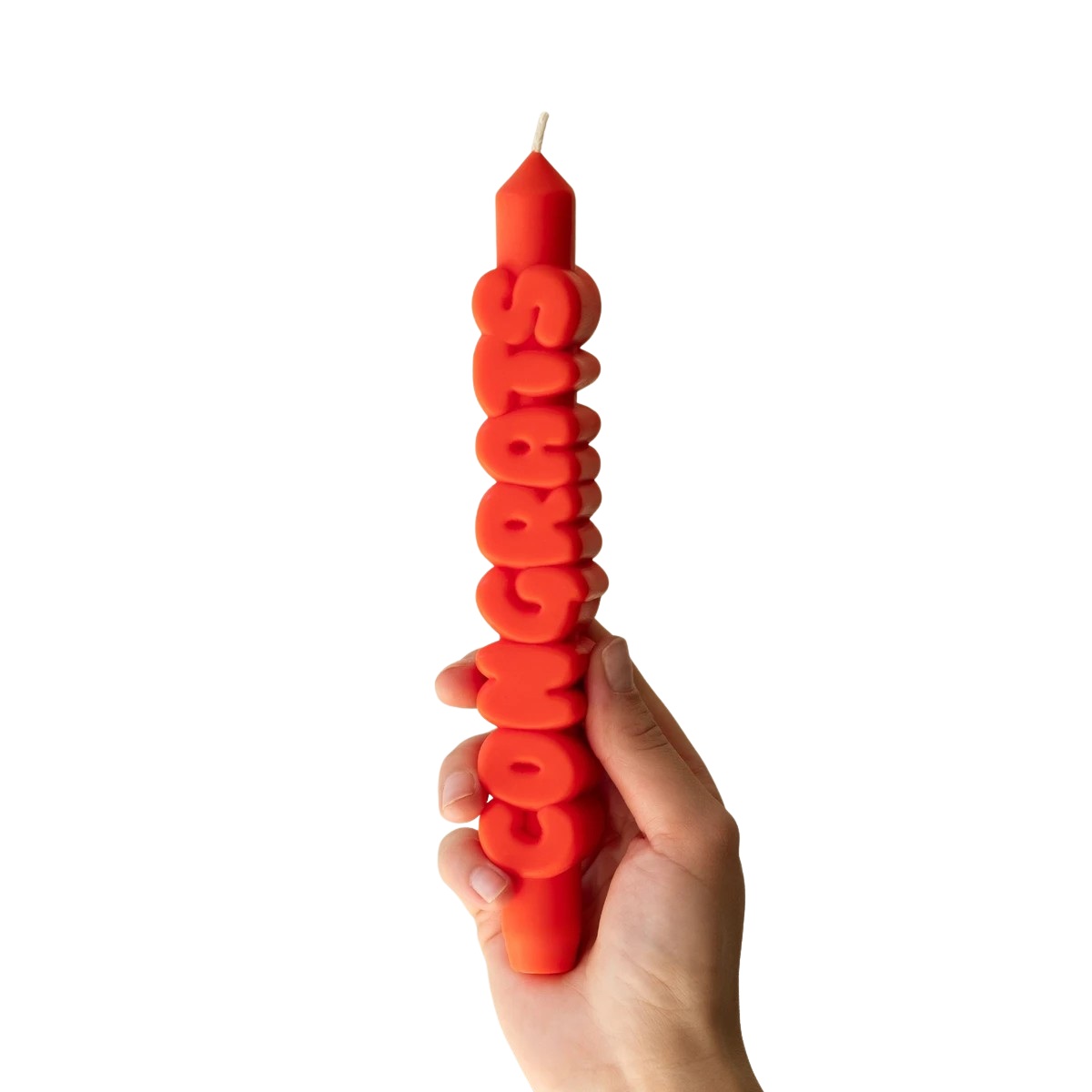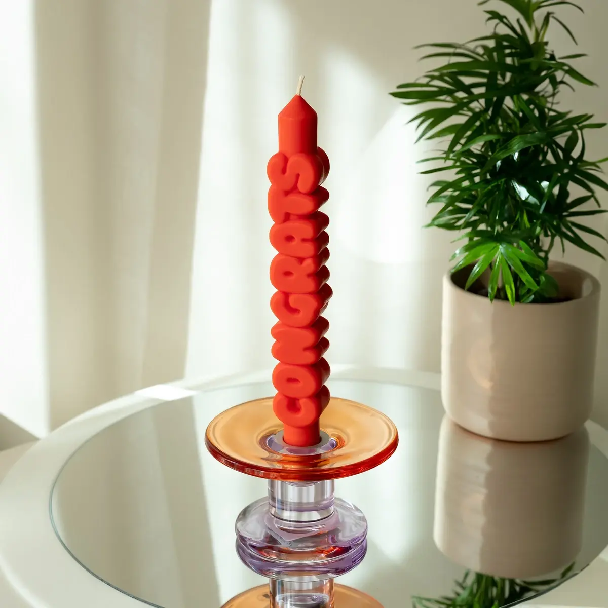 Mit der Congrats Taper Candle in Orange setzt du ein farbenfrohes Statement. Der klare 3D-Schriftzug „Congrats“ kombiniert mit einem kräftigen Orangeton macht diese Kerze zum echten Eyecatcher – perfekt für besondere Momente, bei denen du nicht viele Worte brauchst.