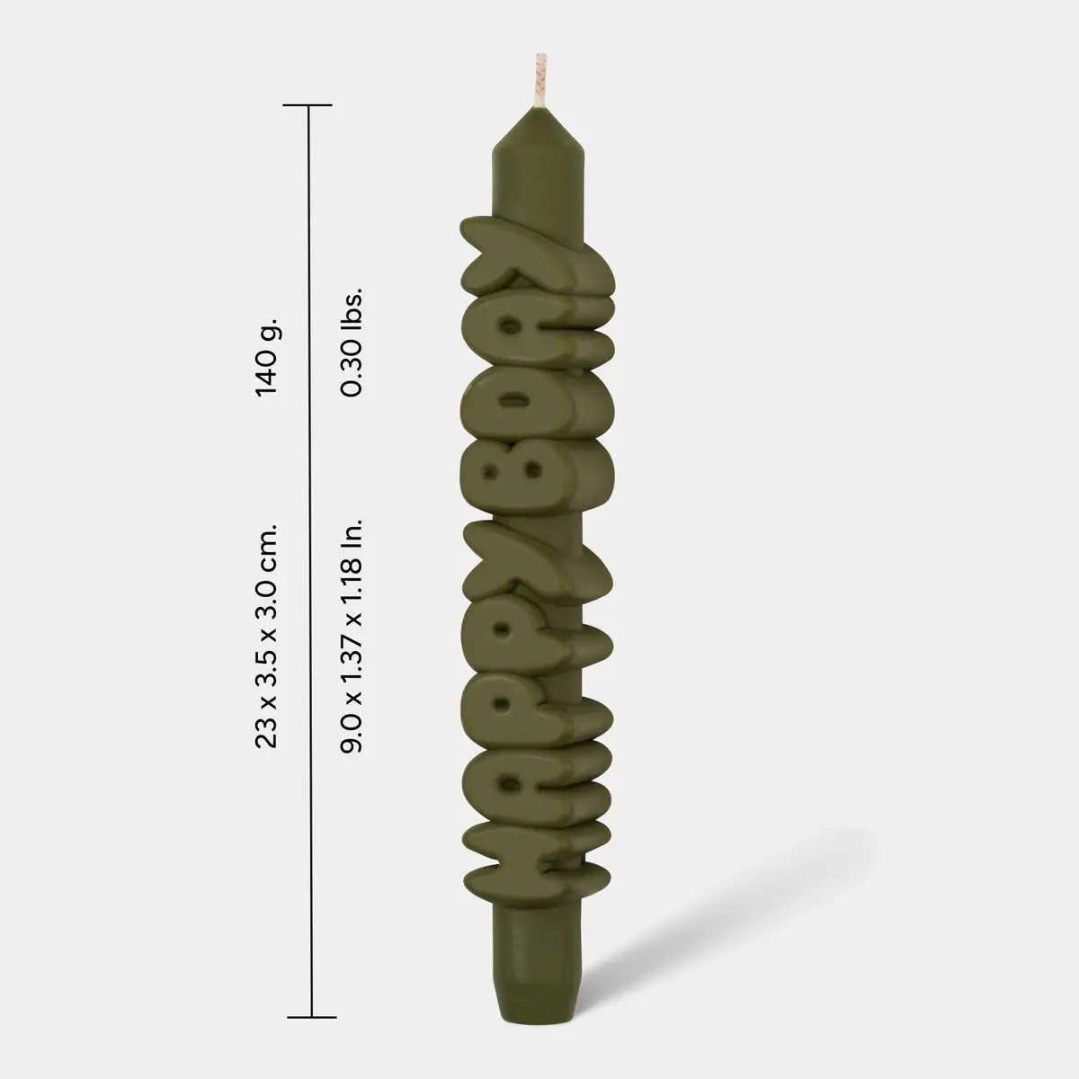 Kerze Taper candle HAPPY BDAY Olive Green ist auf Lager und wird versandt, sobald es wieder verfügbar ist