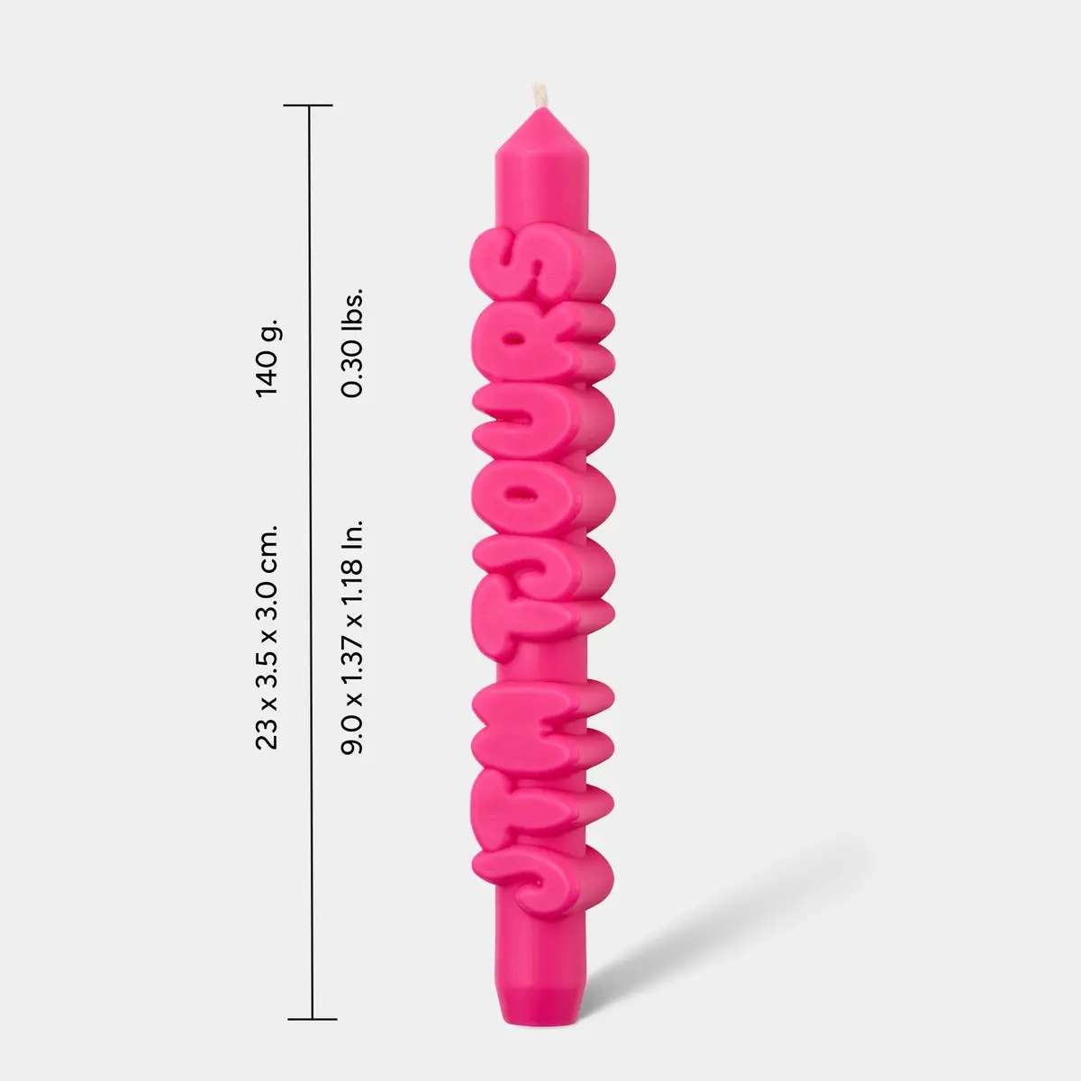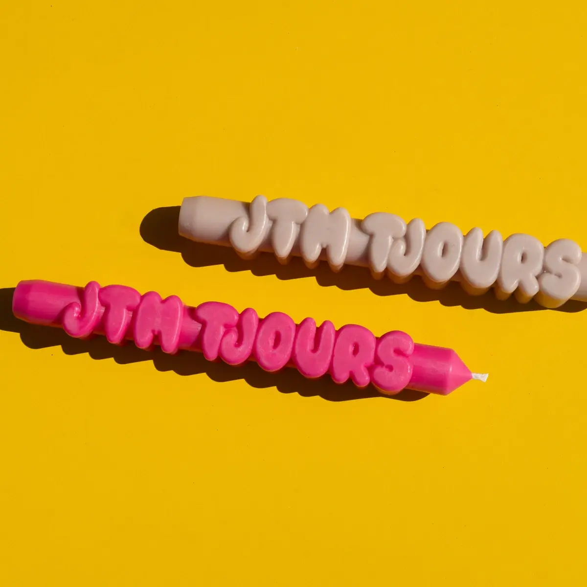 Die JTM Tjours Taper Candle in Pink bringt Herz und Humor zusammen. Ihr liebevoll geprägter Schriftzug „JTM Tjours“ – französisch für „Ich liebe dich für immer“ – macht sie zum idealen Geschenk für alle, die ihre Zuneigung mit Stil und einem Hauch Leichtigkeit zeigen wollen. Ob zum Valentinstag, Jahrestag oder einfach so – diese Kerze sagt mehr als 1.000 Worte.
