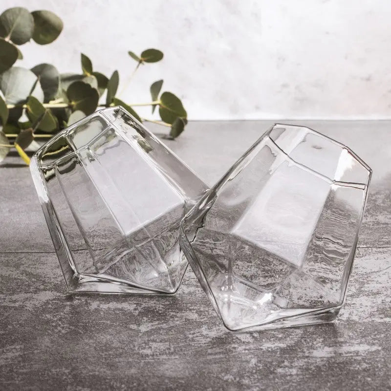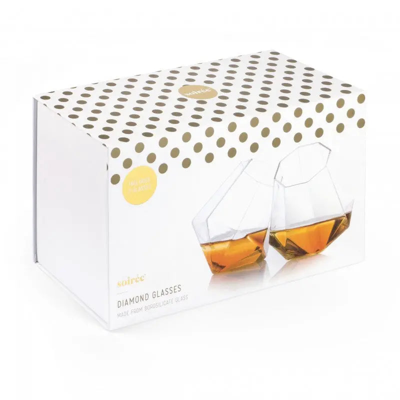 Sie sind ein Diamant! Dieses einzigartig designte Gläser-Set ist eine Klasse für sich. Mit diesem eleganten Gläser-Set werden Sie selber zum Rohdiamanten. Die Gläser sind einem echten Diamanten nachempfunden. Die Form der Gläser ermöglicht es Ihnen das Glas im Stand zu drehen damit sich der volle Geschmack Ihres Lieblings-Whiskeys entfalten kann! Entspannen Sie sich schenken Sie ein und geniessen Sie den funkelnden Diamanten! -Enthält 2 Gläser in Diamanten-Form -Borosilicatglas -Spezielle Form ermöglicht das Drehen des Glases im Stand -Ideal für Spirituosen -NICHT spülmaschinenfest