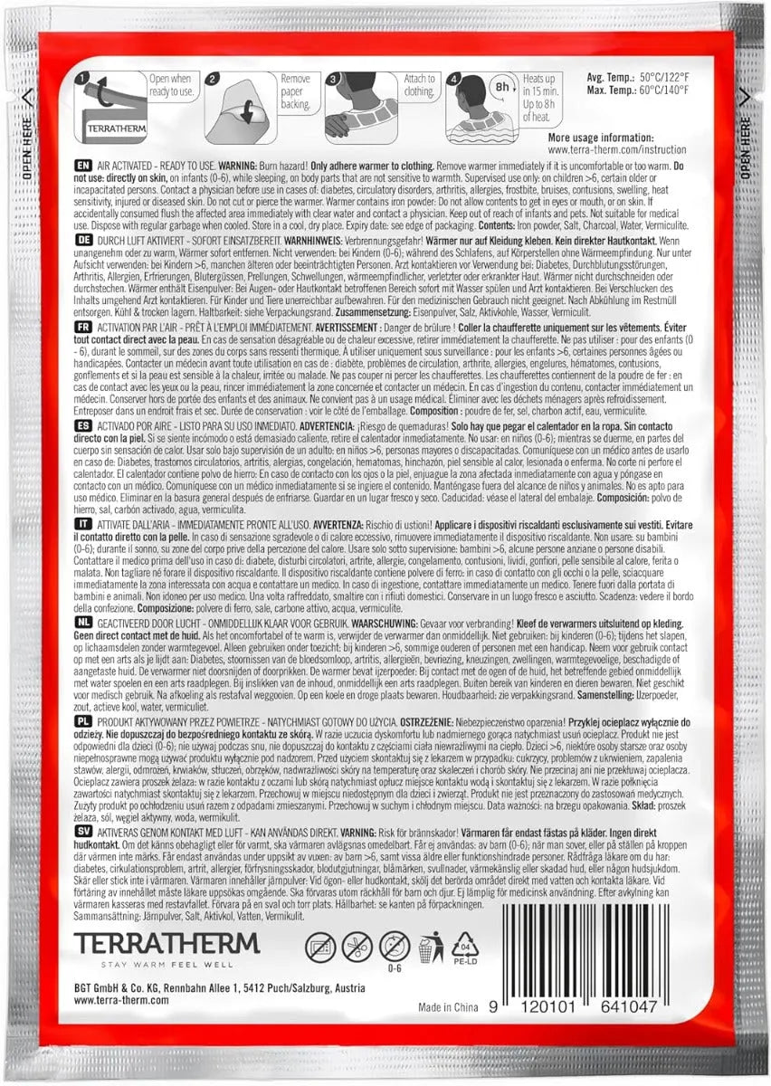 Die Nackenwärmer werden durch Kontakt mit Luft aktiviert, es sind weder Aufheizen noch Batterien erforderlich. Hergestellt aus natürlichen Inhaltsstoffen wie Eisenpulver und Aktivkohle, sind sie umweltfreundlich und bieten eine zuverlässige Wärmeabgabe. Dieses Set enthält 10 Stück, die ideal für den Einsatz im Freien oder zu Hause geeignet sind. Ob bei kaltem Wetter oder Verspannungen, die TerraTherm Nackenwärmer bieten eine effektive und natürliche Wärmebehandlung.