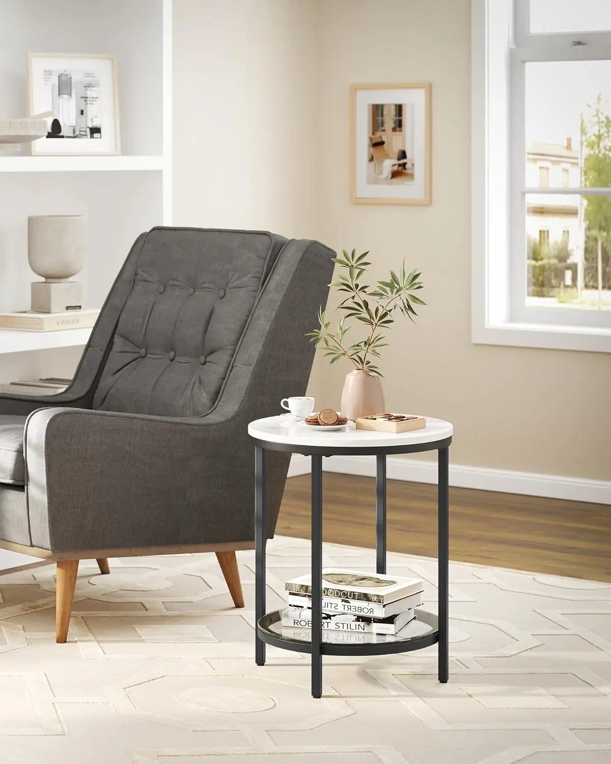 Entdecken Sie den SONGMICS Beistelltisch, der nicht nur funktional, sondern auch ein echter Blickfang ist! Mit seinem schlichten, aber stilvollen Design vereint dieser Nachttisch modernes Flair und praktische Anwendung. Das klassische tintenschwarze Gestell und die klare Linienführung verkörpern puren Minimalismus, während die Tischplatte in eleganter Marmoroptik und die Glasablage Ihrem Raum einen einzigartigen Charakter verleihen.