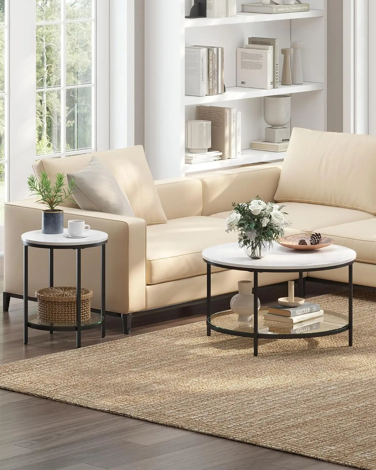 Beistelltisch mit 2 Ebenen marmorweiss ist auf Lager und wird versandt, sobald es wieder verfügbar ist