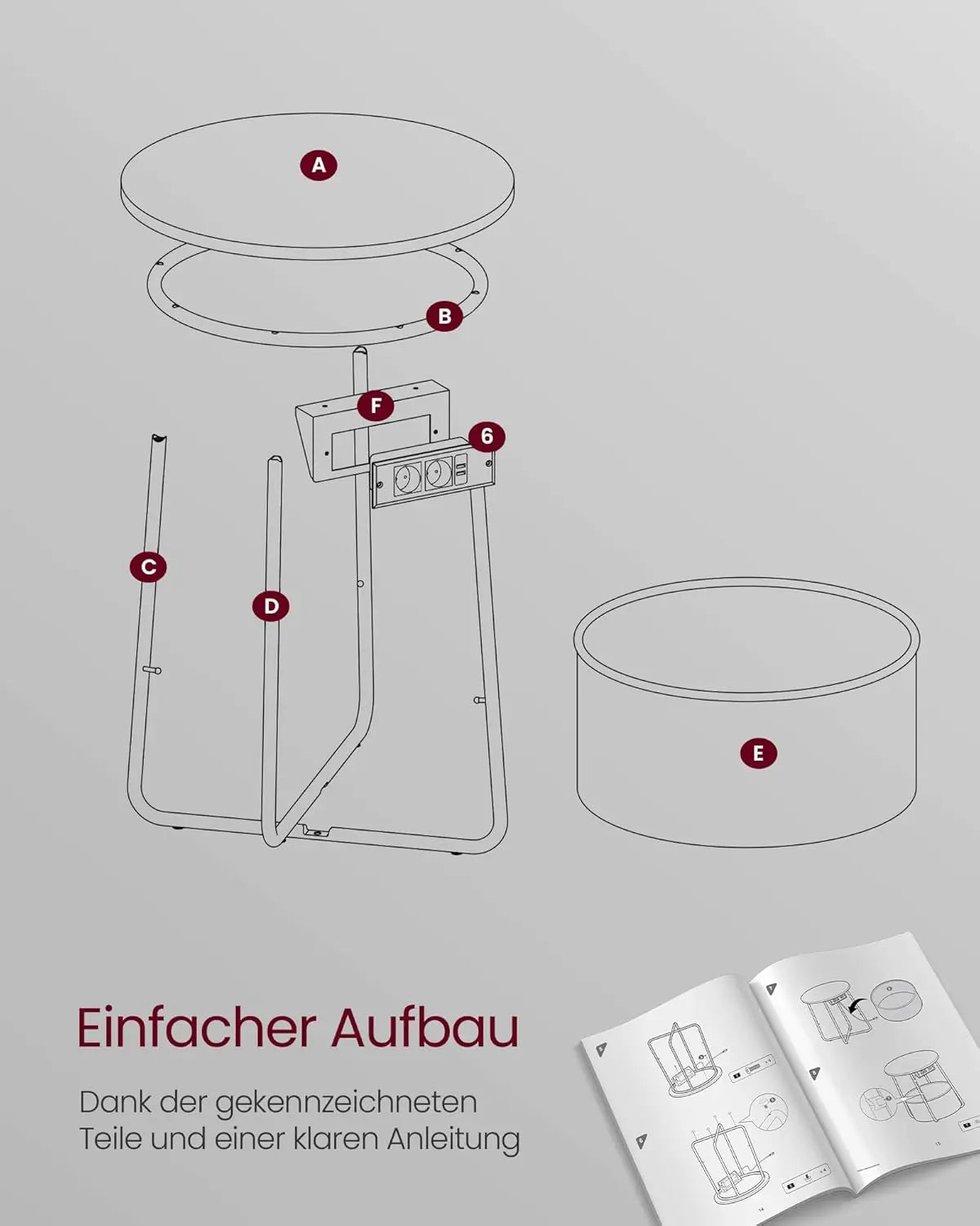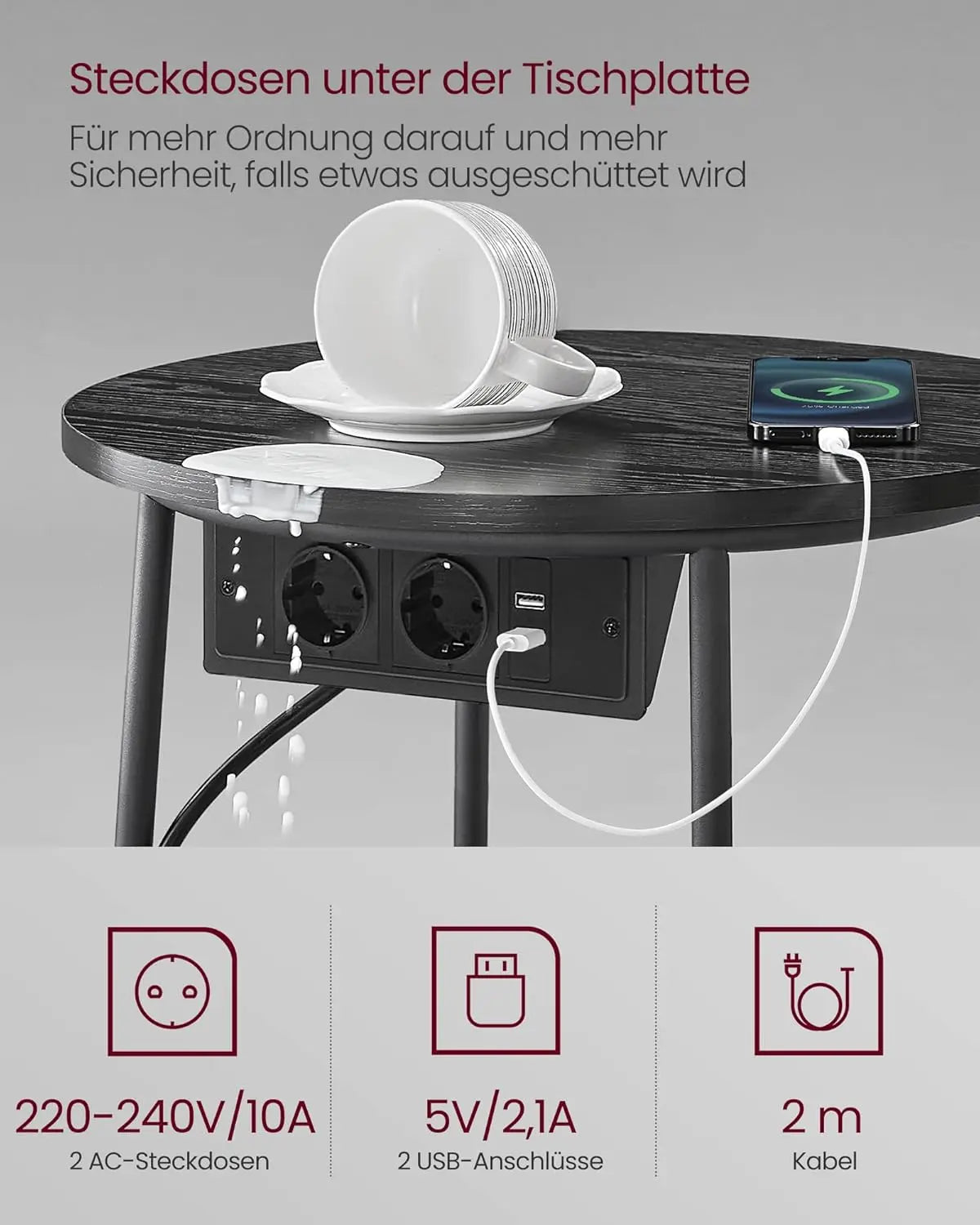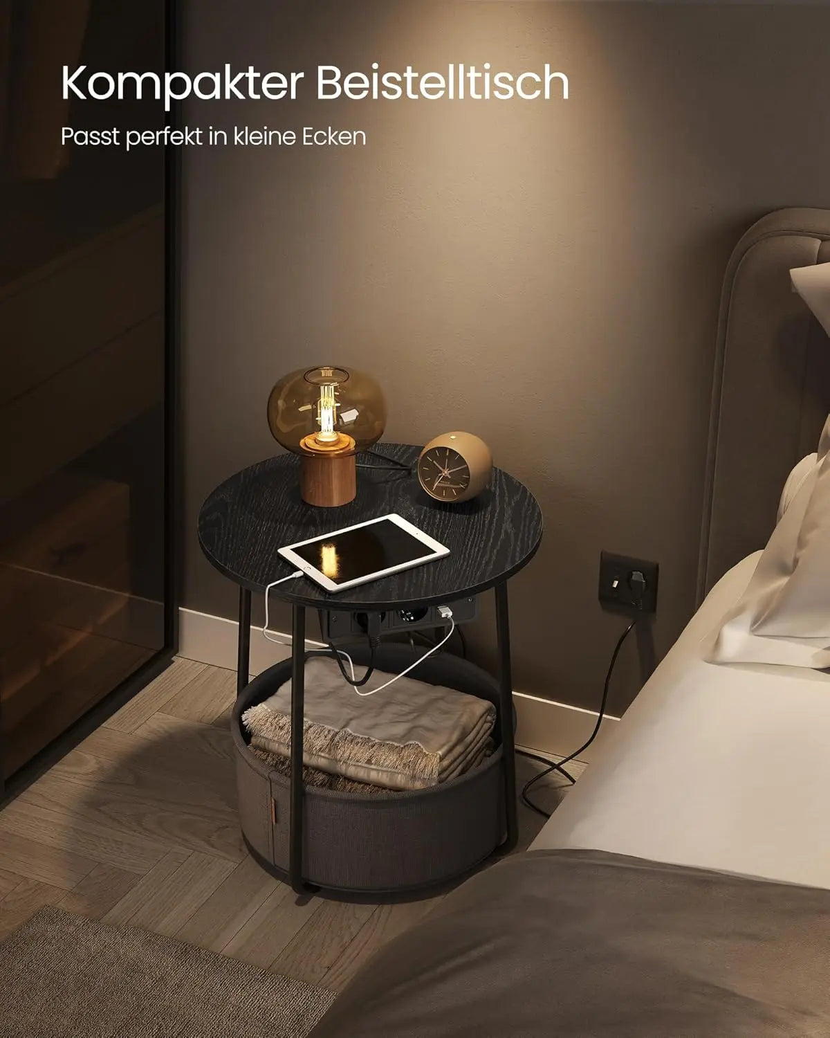 Beistelltisch mit Steckdose, Stauraum, schiefergrau