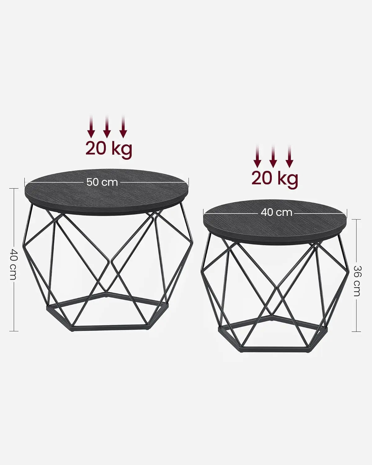 Entdecken Sie das SONGMICS Couchtisch-Set, das nicht nur funktional, sondern auch ein echter Blickfang für Ihr Zuhause ist. Mit einem grossen Tisch von 50 cm Durchmesser und 40 cm Höhe sowie einem kleinen Tisch von 40 cm Durchmesser und 36 cm Höhe, ist dieses Set ideal für kleine Räume. Ob für Ihren Nachmittagstee, dekorative Akzente oder als praktische Ablage für Ihren Laptop – hier findet alles seinen Platz.