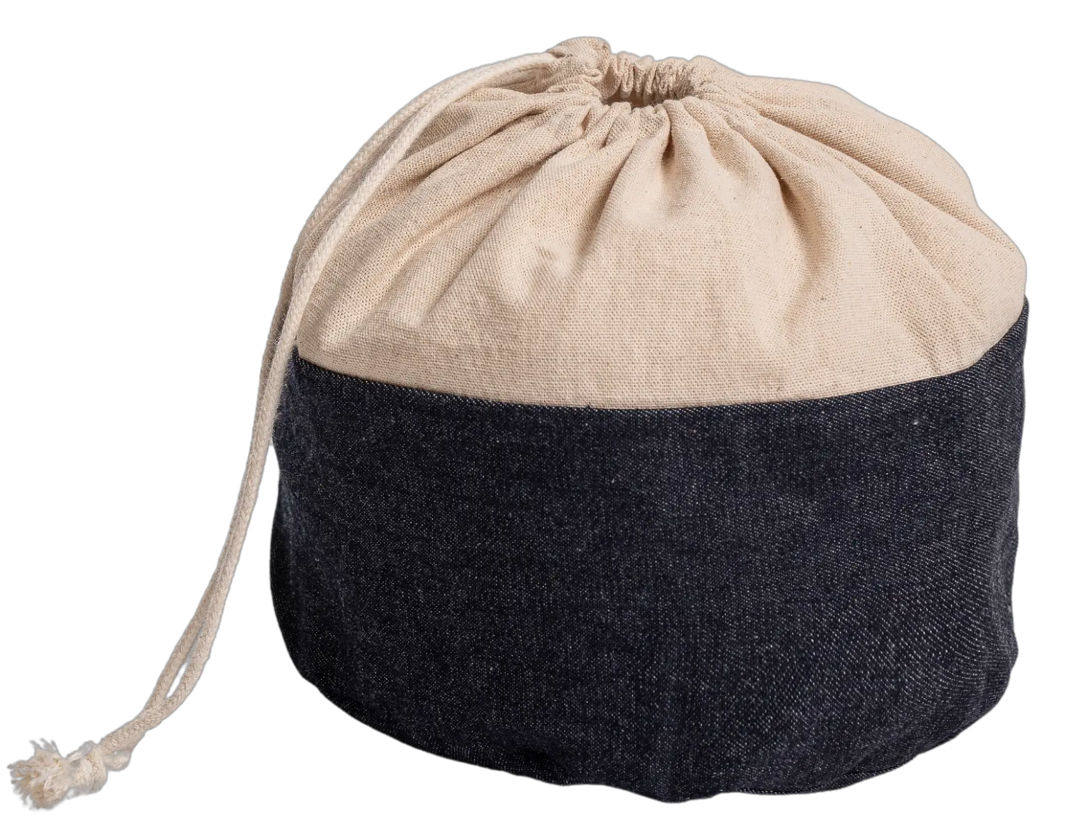 1 Brotbeutel-Früchtekorb aus Jeans-Stoff/Baumwolle - in der folgenden Grösse: 1x 20cm Vorteile vom Brotkorb: Wenn man den oberen Teil des Beutels 2x umschlägt, dann wird der Beutel zum Brotkorb. Mit der Baumwollkordel zusammenziehen Materialien: Jeans-Stoff und Baumwolle Waschmaschinengeeignet