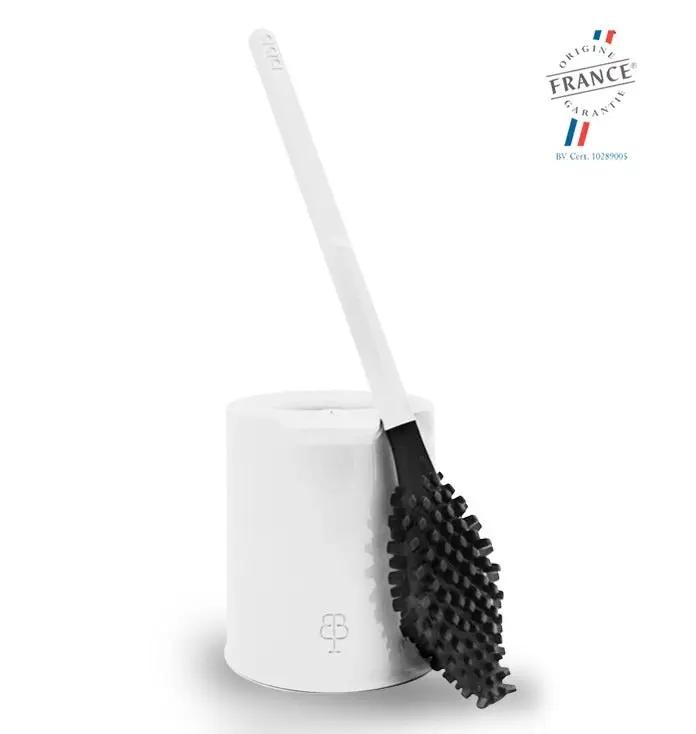 Die Bürste besteht aus recycelten und bio-basierten Materialien – darunter französische Verpackungsabfälle und pflanzliche Fasern. Hergestellt wird sie vollständig in Frankreich und hat eine nachgewiesene Lebensdauer von über 5 Jahren. Das macht sie zur nachhaltigen Alternative zu herkömmlichen WC-Bürsten, die oft schnell ausgetauscht werden müssen.