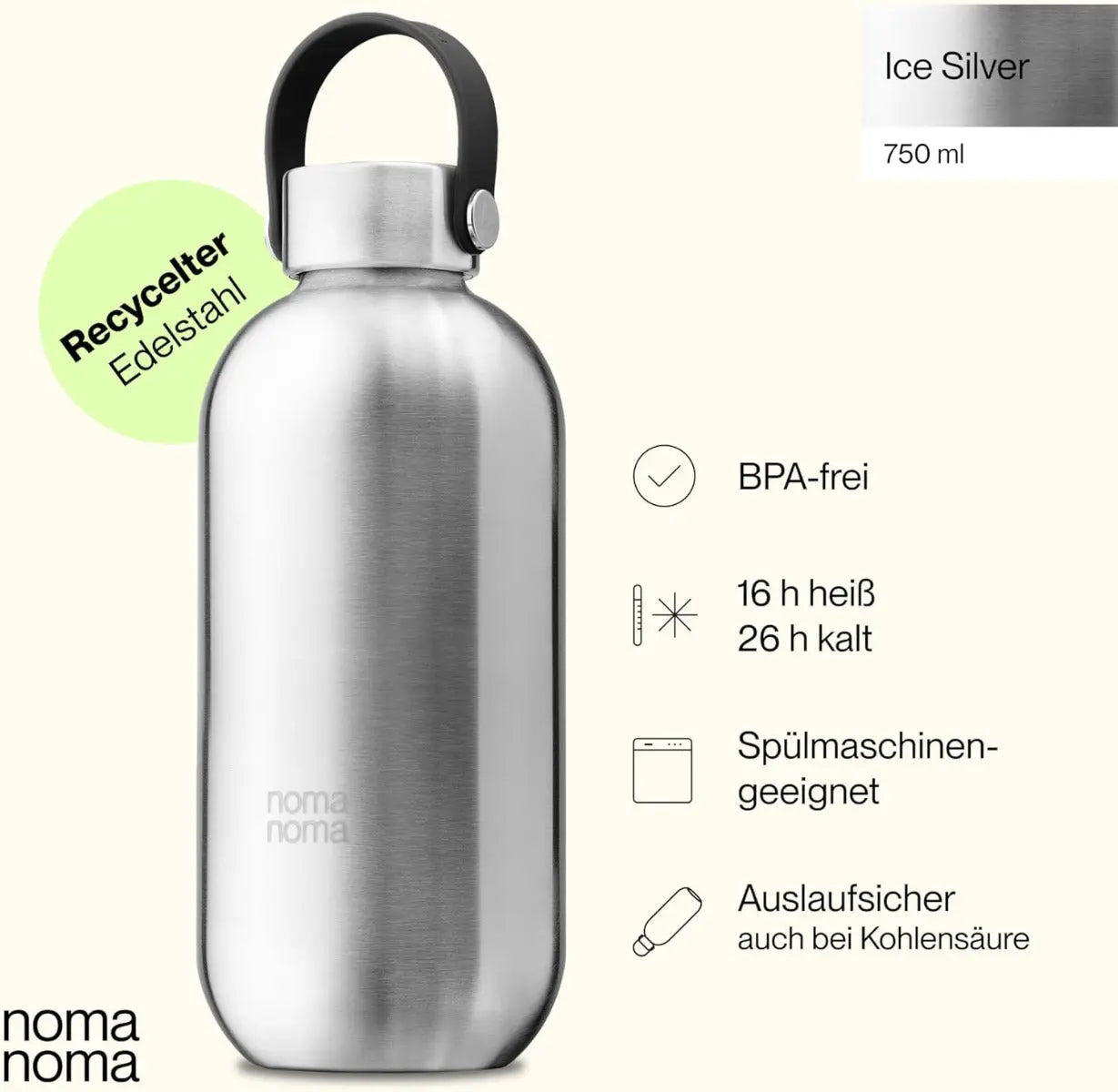 Mit der Noma Noma Trinkflasche aus hochwertigem Edelstahl bist du jederzeit bestens ausgerüstet – ob im Büro, beim Sport oder auf Reisen. Die doppelwandige Isolierung sorgt dafür, dass deine Getränke über Stunden hinweg ihre Temperatur behalten: Heiss bleibt heiss, kalt bleibt kalt.