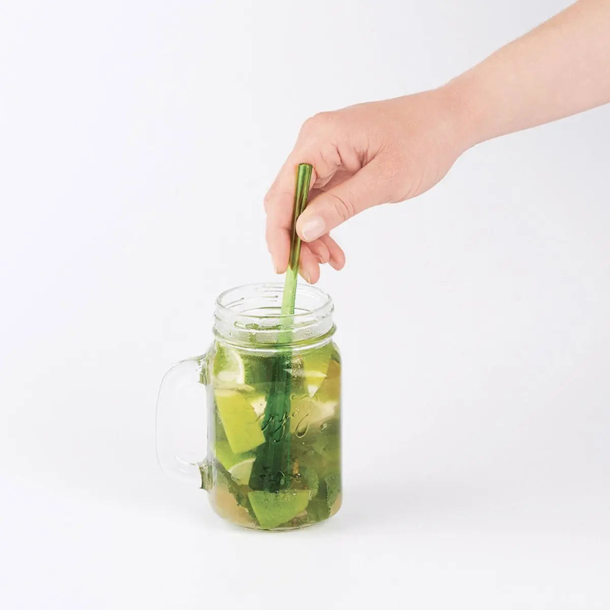 Beispiel: Geben Sie etwas Rum, Zitrone und Rohrzucker in Ihr Glas. Rühren Sie es um. Fügen Sie einige Minzblätter hinzu, bevor Sie sie mit Ihrem 3-in-1-Strohhalm zerkleinern. Vergessen Sie die Eiswürfel nicht, rühren Sie um und schließen Sie dann mit einem Schuss Sodawasser ab. Ihr Mojito ist nun bereit zum Schlürfen. Eine Ode an die Faulheit und den Genuss. 6 verschiedene Farben, um die Gläser leicht zu erkennen.