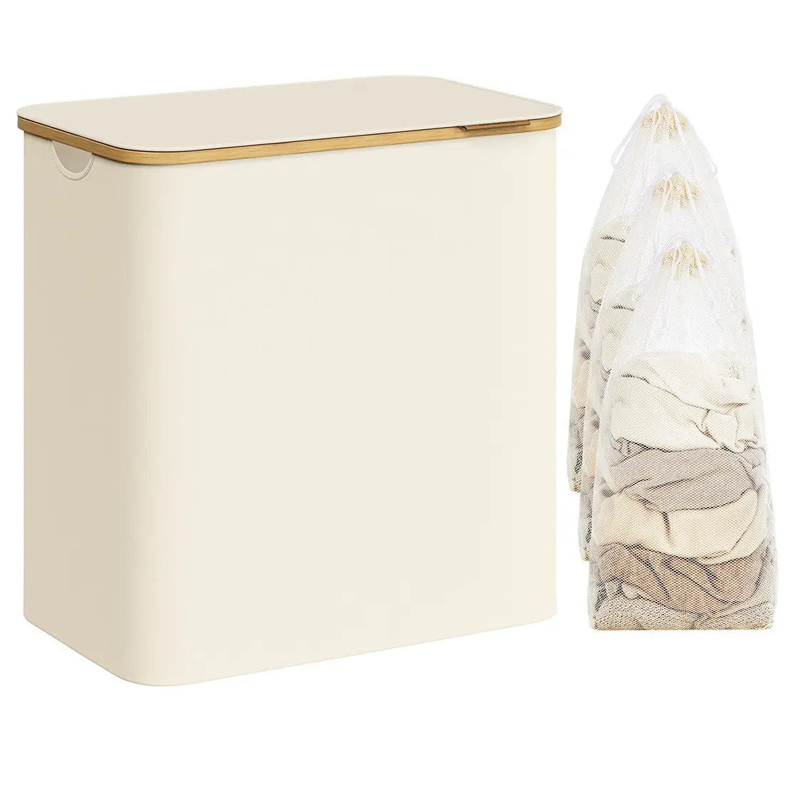 Wäschekorb mit Deckel 3 Fächer Cremeweiss
