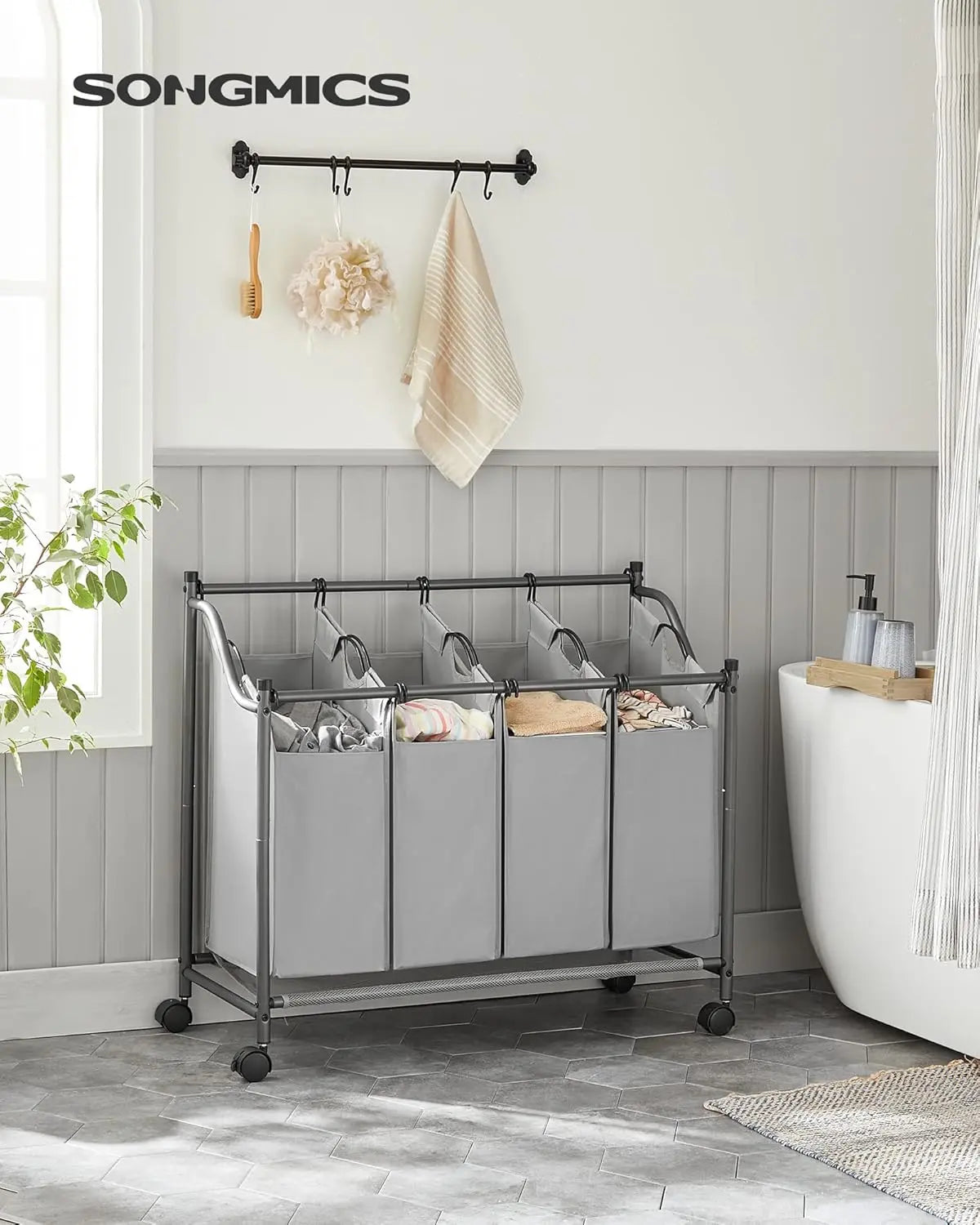 Wäschekorb mit Rollen und 4 Stofftaschen Grau ist auf Lager und wird versandt, sobald es wieder verfügbar ist