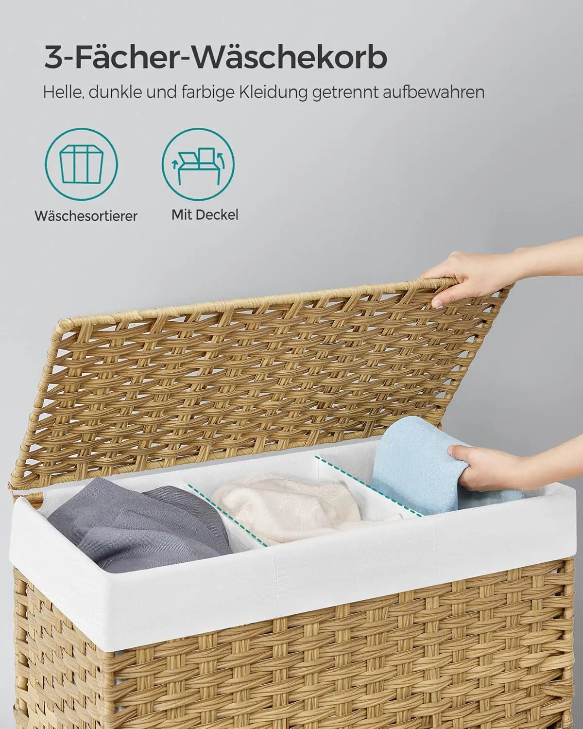 Wäschekorb Rattan-Optik 3 Fächer Naturfarben