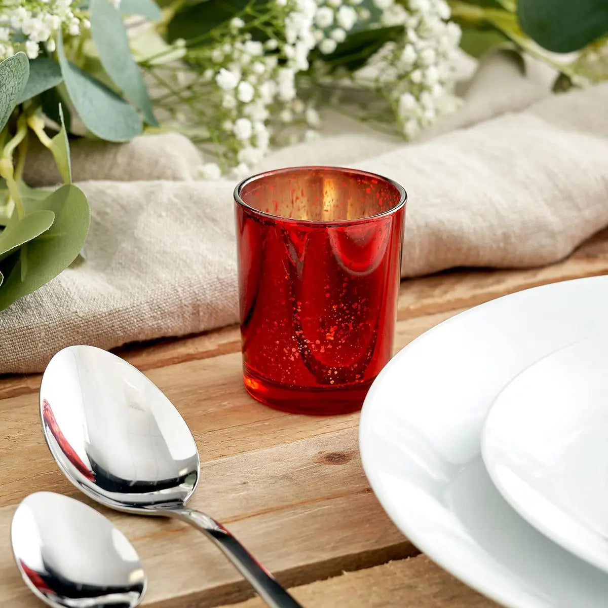 Unser Set aus gesprenkelten roten Glas-Teelichthaltern verleiht jeder Umgebung eine edle und raffinierte Note. Perfekt für Hochzeiten, Jubiläen oder besondere Anlässe, bezaubern diese Halter mit einer antiken Metalloptik, die das flackernde Licht eines Teelichts wunderschön reflektiert. Sie schaffen eine magische und unvergessliche Atmosphäre, die jeden Moment besonders macht.