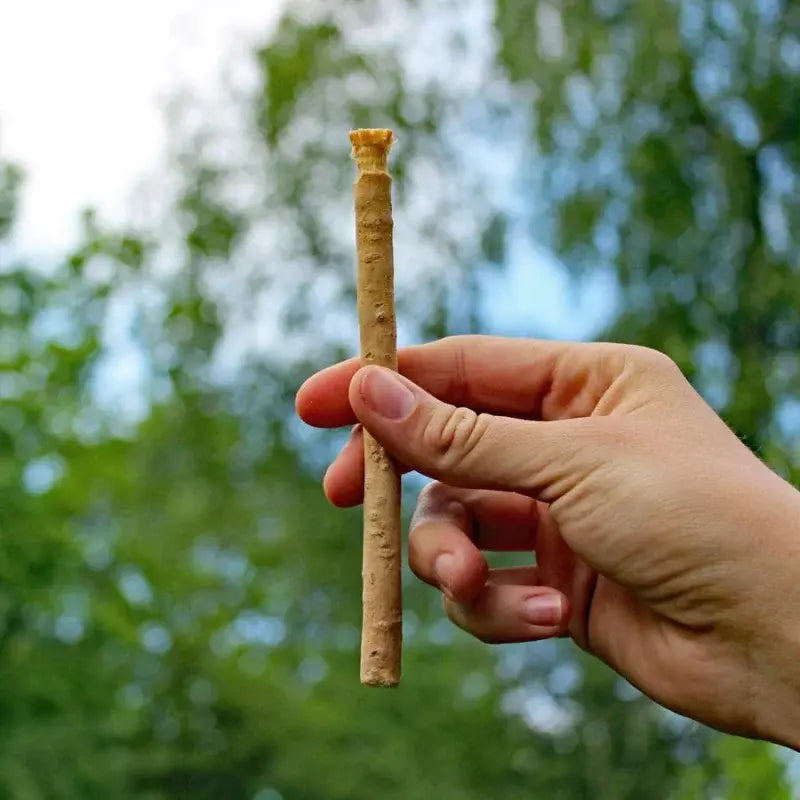 Die Anwendung ist denkbar einfach: Rinde entfernen, kurz anfeuchten, die Spitze weichkauen – fertig ist die natürliche Zahnbürste. Durch sanfte, kreisende Bewegungen werden die Zähne gereinigt – Zahn für Zahn, ganz ohne Druck. Holzfasern können ausgespuckt werden. Bei nachlassender Wirkung einfach das Ende abschneiden und neu ankauen.