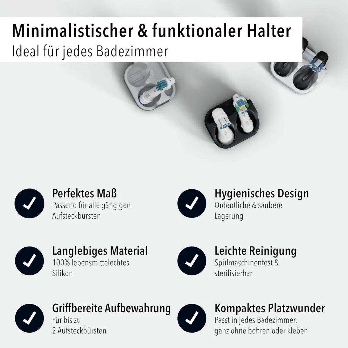 Qikfresh Aufsteckbürstenhalter für 2 Aufsteckbürsten – Stylisch, hygienisch und perfekt organisiert