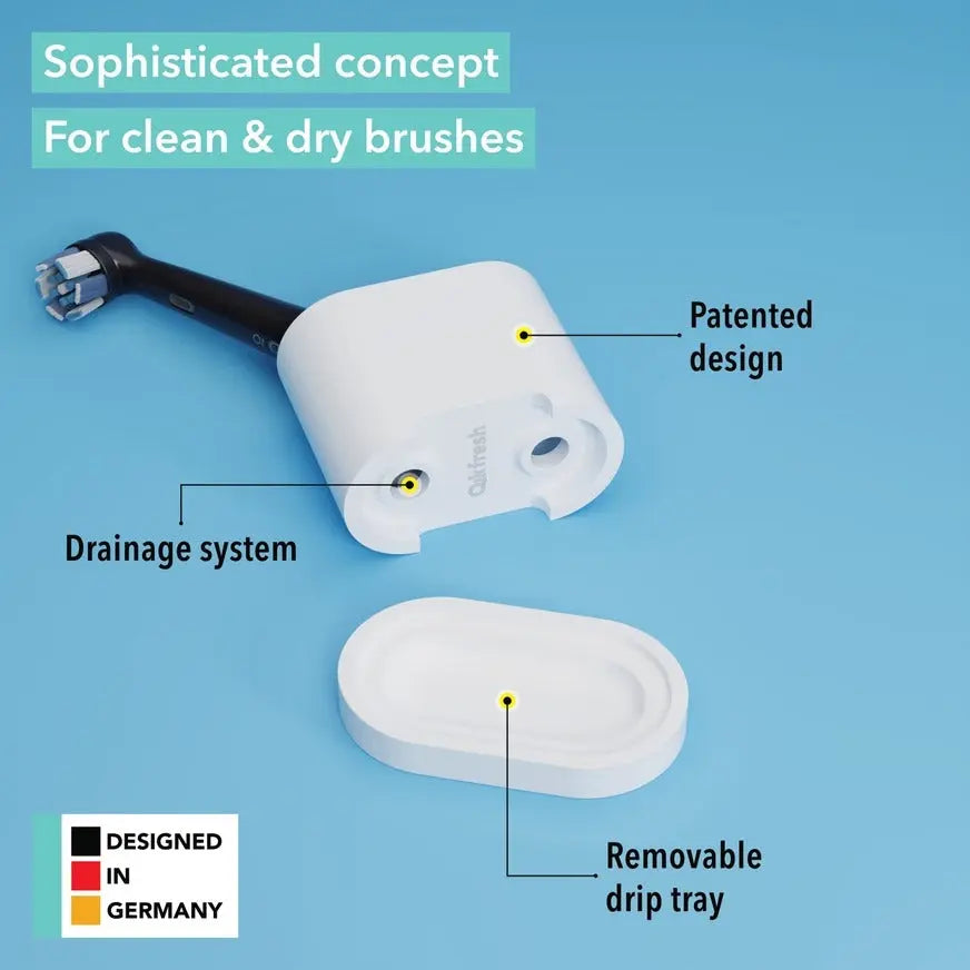Der Qikfresh Zahnbürsten- und Aufsteckbürstenhalter bietet eine durchdachte Lösung für die hygienische und ordentliche Aufbewahrung von Zahnbürsten im Badezimmer. Als iF DESIGN AWARD 2024 Gewinner überzeugt er mit klarer Formensprache, funktionalem Aufbau und hochwertigen Materialien – in einem stilvollen Accessoire für moderne Badumgebungen.