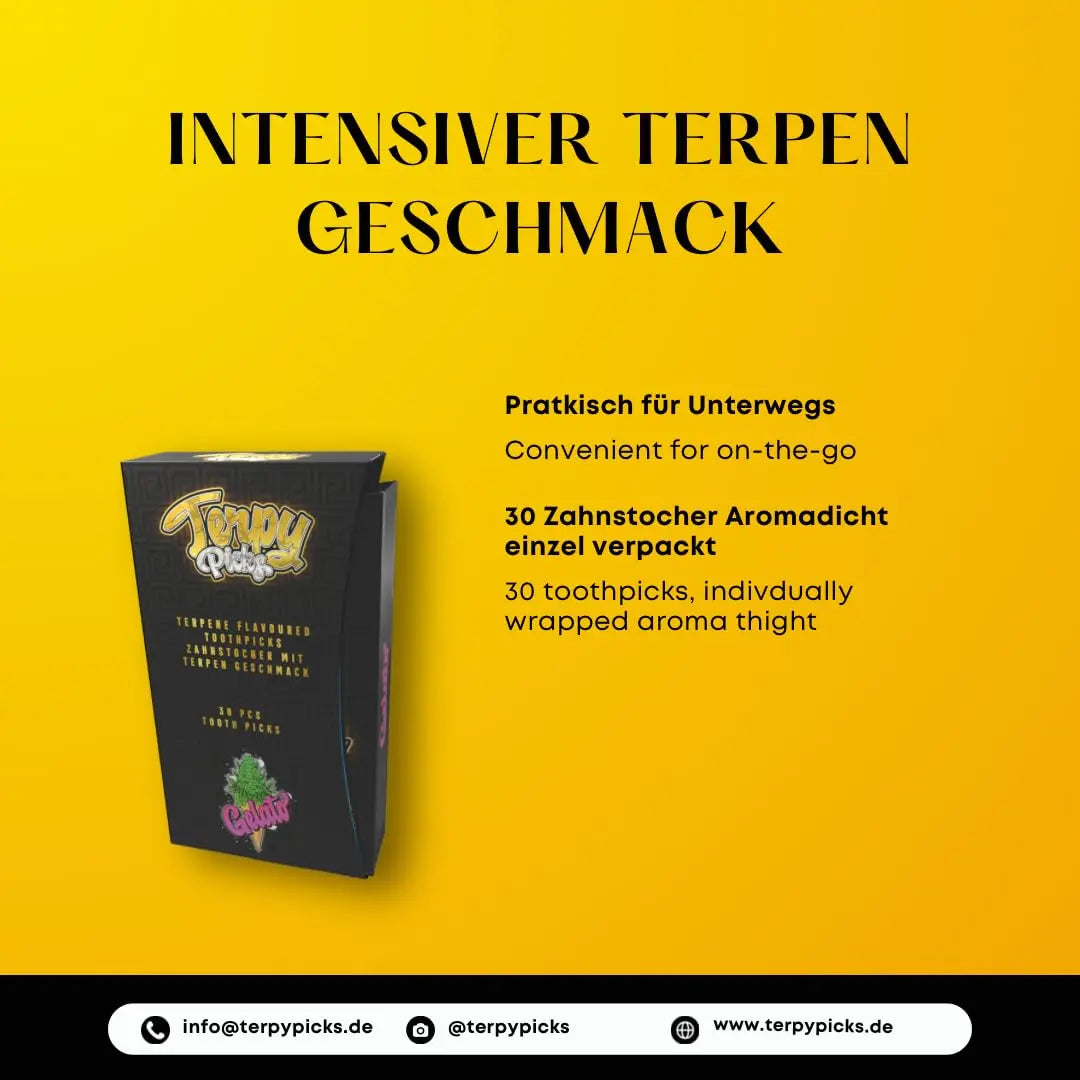 Die Terpy Picks Zahnstocher bringen frischen Wind in die Welt der kleinen Alltagsrituale. Mit ihrem cremig-süssen Gelato-Aroma vereinen sie Geschmack, Funktion und Stil – ideal für alle, die auf der Suche nach einer modernen, zuckerfreien Alternative zu Kaugummi oder Bonbons sind.