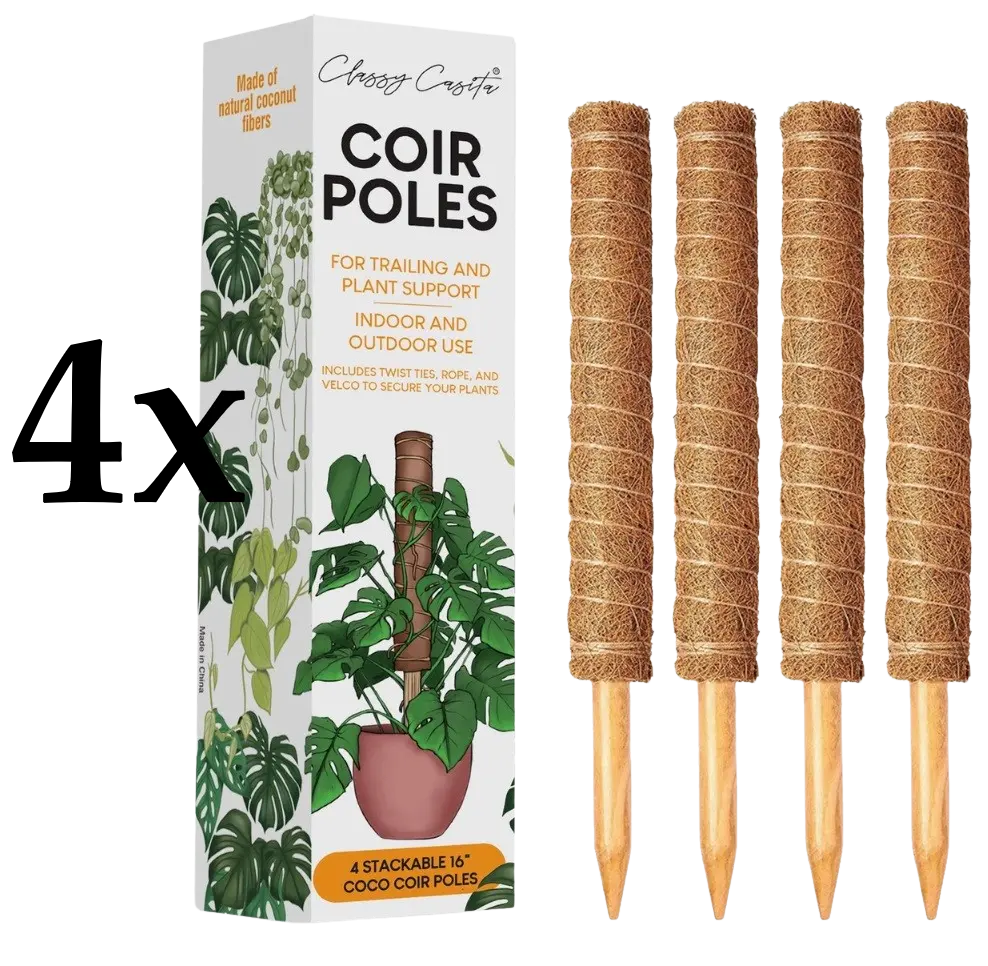 4er Set à 40 cm, frei steckbar und kombinierbar von 40 cm als Einzelstück bis 160 cm zusammengesteckt. Die Kokosstangen bieten natürliche Unterstützung für rankende Pflanzen und fördern gesundes Wachstum. Hergestellt aus Kokosfaser mit einem stabilen PVC-Kern, sind sie ideal für den Innen- und Aussenbereich. Einfach zu verwenden und erweiterbar – für langlebige Pflanzenpflege.