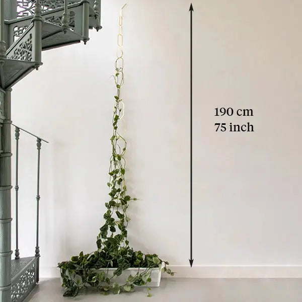 Kletterpflanzen brauchen eine Richtung – und du gibst sie vor: mit der stilvollen Rankhilfe Kette Gold von Botanopia. Diese goldene Messingkette ist mehr als nur ein Spalier: Sie ist ein Designobjekt, das deine Pflanzen beim Wachsen unterstützt und gleichzeitig deinem Zuhause oder Balkon eine elegante, vertikale Note verleiht.