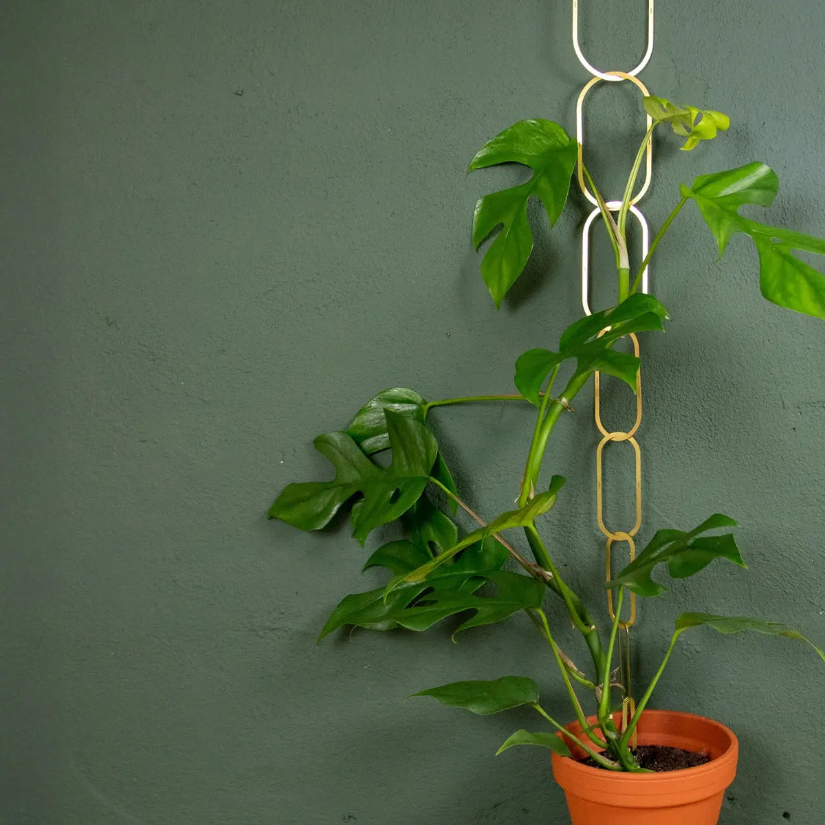 Ob Monstera, Efeutute oder blühender Jasmin – deine Pflanzen finden in der schimmernden Kette sicheren Halt und ein optisches Highlight. Die modulare Konstruktion wächst mit deiner Pflanze mit und lässt sich nach Wunsch individuell anpassen oder erweitern. Dank ihrer platzsparenden Form ist sie ideal für kleine Räume oder urbane Wohnungen mit viel Grünliebe, aber wenig Fläche.
