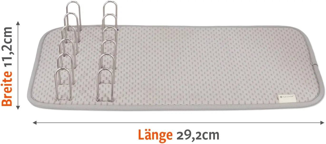 Mit den kompakten Massen von 29,2 cm Länge, 11,2 cm Breite und 8,04 cm Höhe passt das Abtropfgestell in nahezu jede Küche und lässt sich bei Nichtgebrauch platzsparend verstauen. Die Reinigung ist unkompliziert: Das Gestell kann in der Spülmaschine gereinigt werden, während die Mikrofaser-Matte in der Waschmaschine bei niedrigen Temperaturen gewaschen werden kann. Setze auf das Full Circle Shape-Shifter 2-in-1 Abtropfgestell und erlebe, wie einfach und nachhaltig das Trocknen von Geschirr sein kann.