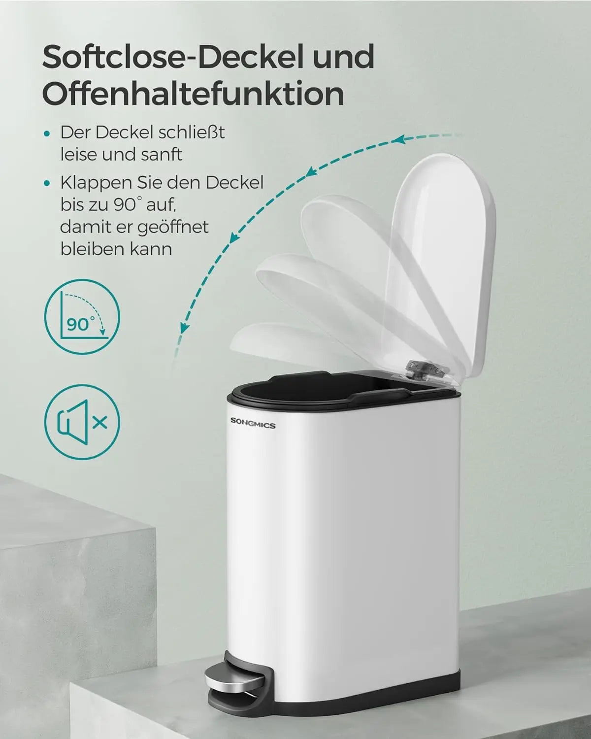 Kunden schätzen die stilvolle Kombination aus Funktionalität und Design des SONGMICS Abfalleimers. Besonders beliebt sind das sanfte Schließmechanismus, der leise Deckel und die hygienische Fußbetätigung. Das kompakte Format passt perfekt in kleine Räume, während der abnehmbare Inneneimer mit Griffen die Handhabung erleichtert. Zudem sorgt das hochwertige, rostfreie Material für Langlebigkeit und Wasserbeständigkeit, was ihn zur idealen Wahl für feuchte Badezimmer macht.