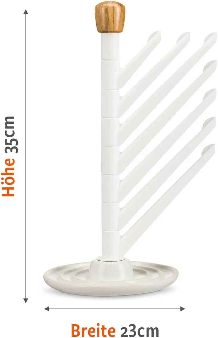 Praktisches Abtropfgestell mit sieben rotierenden Armen, ideal zum Trocknen von Glasflaschen und Geschirrtüchern, platzsparendes Design für jede Küche