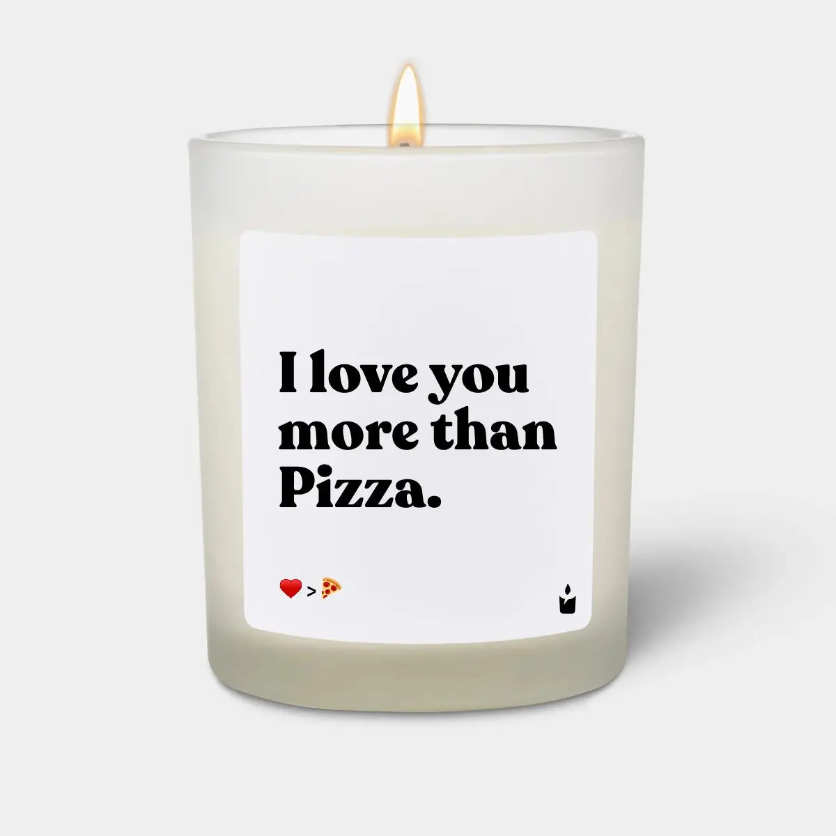 Duftkerze Weiss Woody I love you more than Pizza.