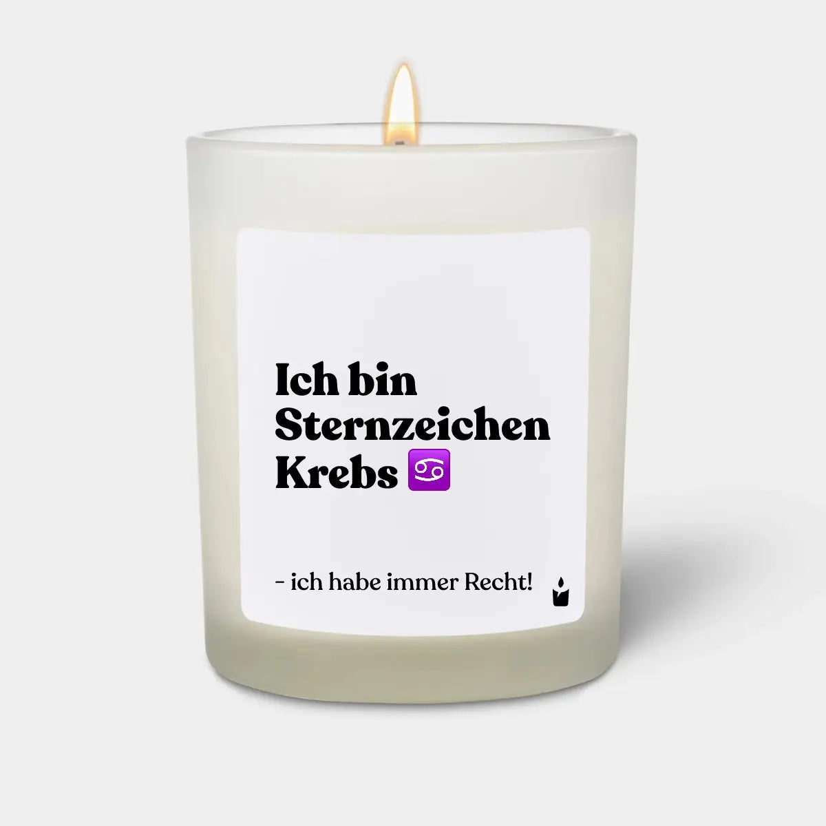 Duftkerze Weiss Woody Ich bin Sternzeichen Krebs - ich habe immer Recht!
