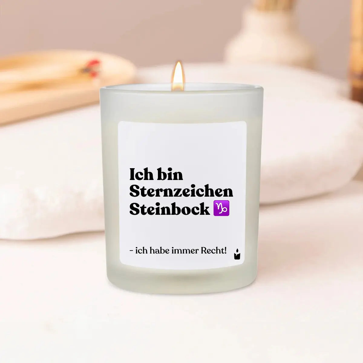 Duftkerze Weiss Woody Ich bin Sternzeichen Steinbock - ich habe immer Recht!