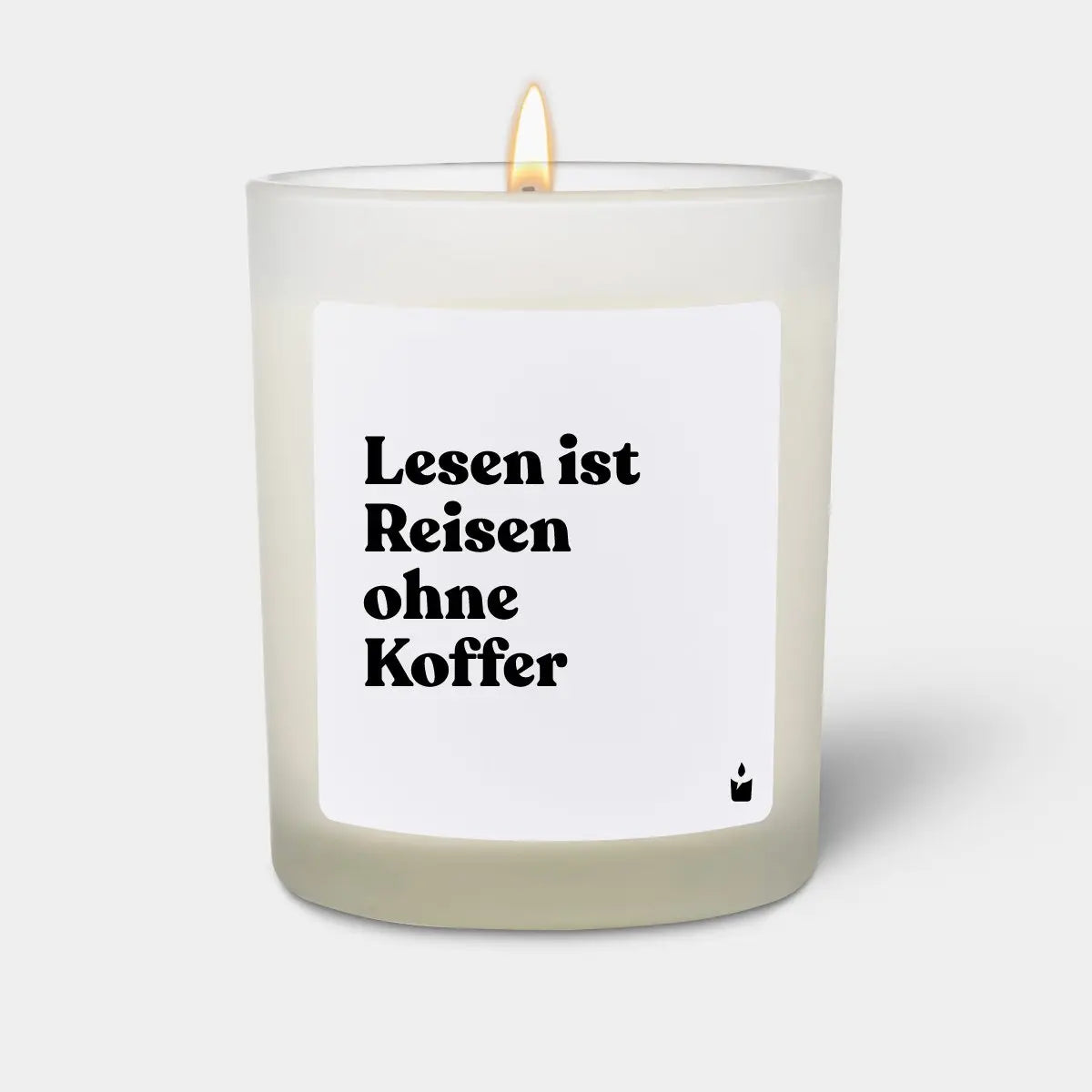 Duftkerze Weiss Woody Lesen ist Reisen ohne Koffer ist auf Lager und wird versandt, sobald es wieder verfügbar ist
