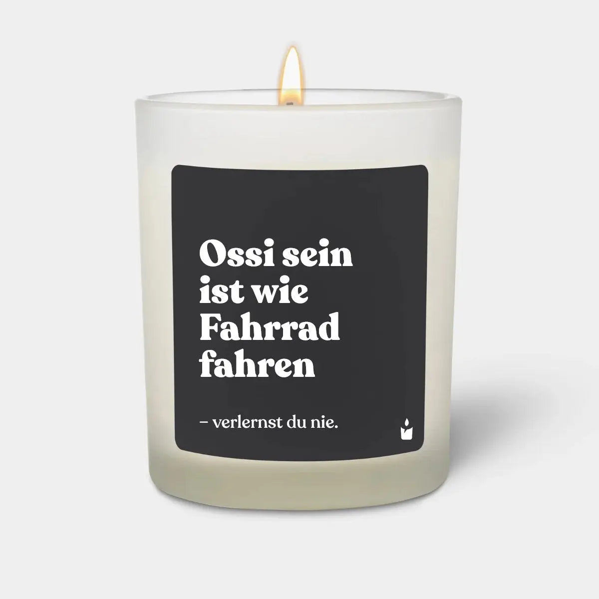 Duftkerze Weiss Woody Ossi sein ist wie Fahrrad fahren
