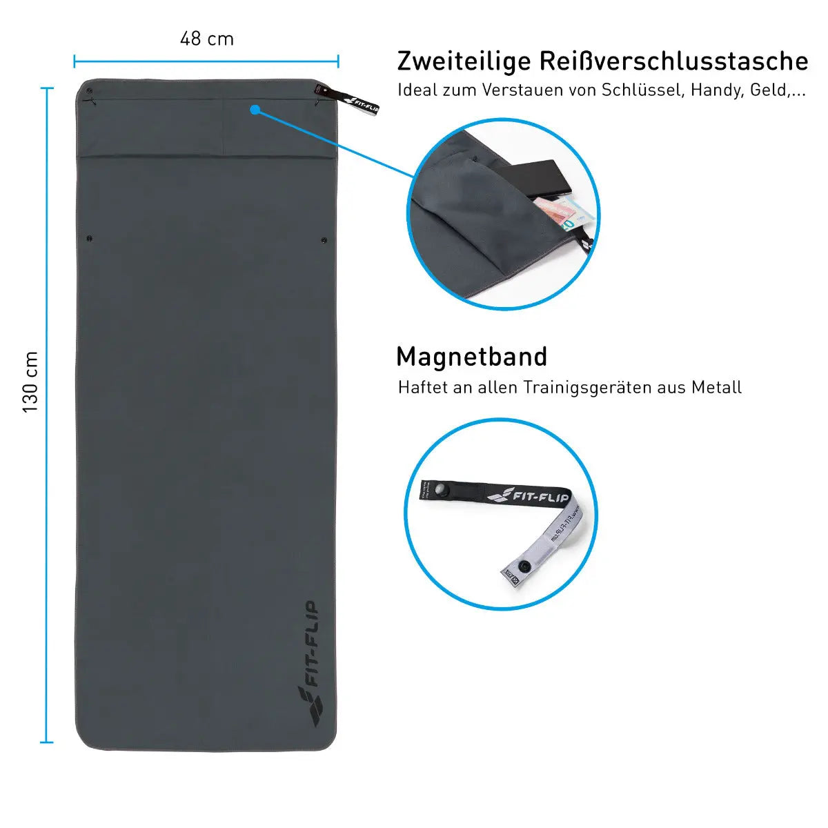 Fit-Flip Fitness-Handtuch mit Reissverschluss – Multifunktionales Sporthandtuch mit Tasche
