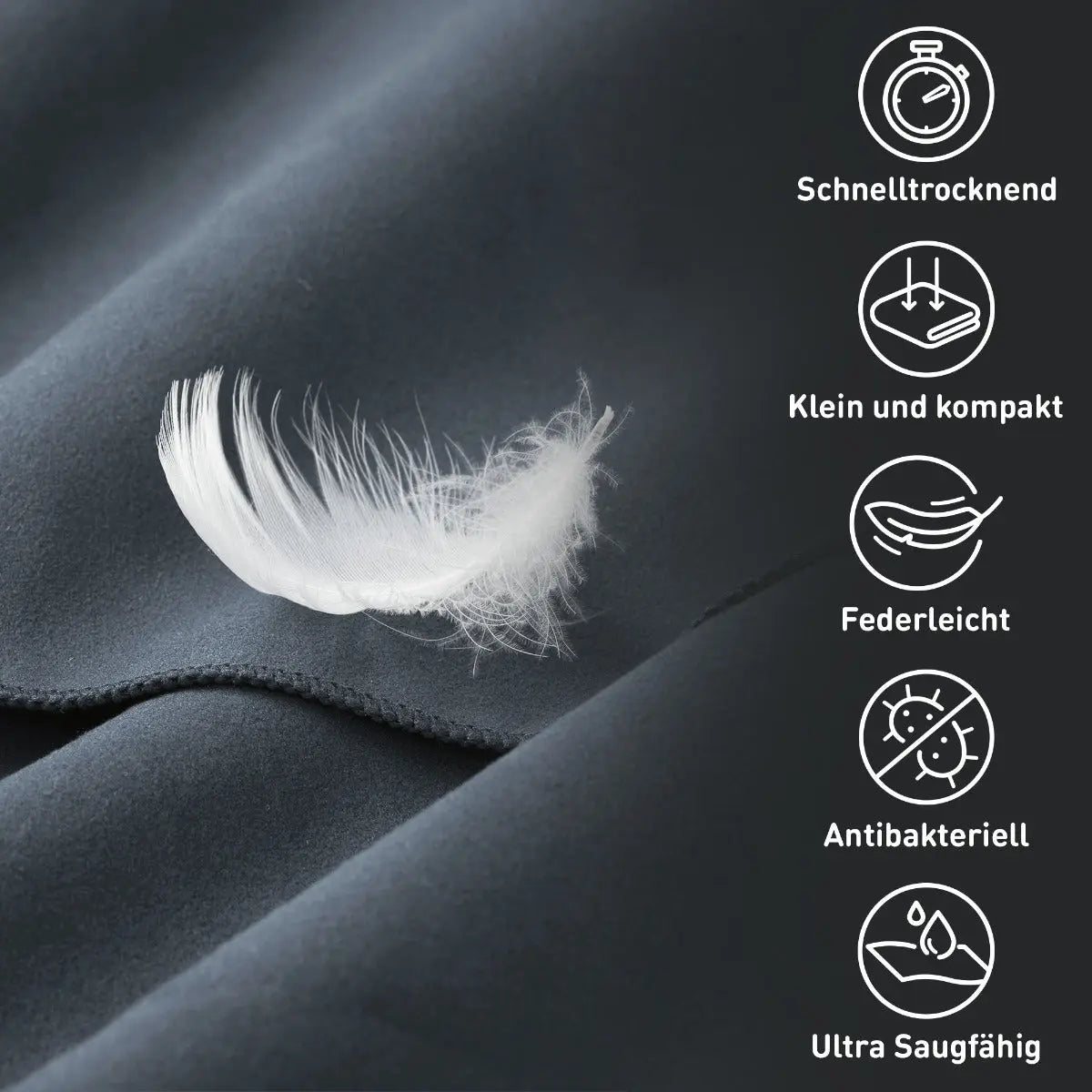 Hochwertige Mikrofaser für optimale Saugfähigkeit, Integrierte Reissverschlusstasche für sichere Aufbewahrung, Kompakt und leicht für einfachen Transport