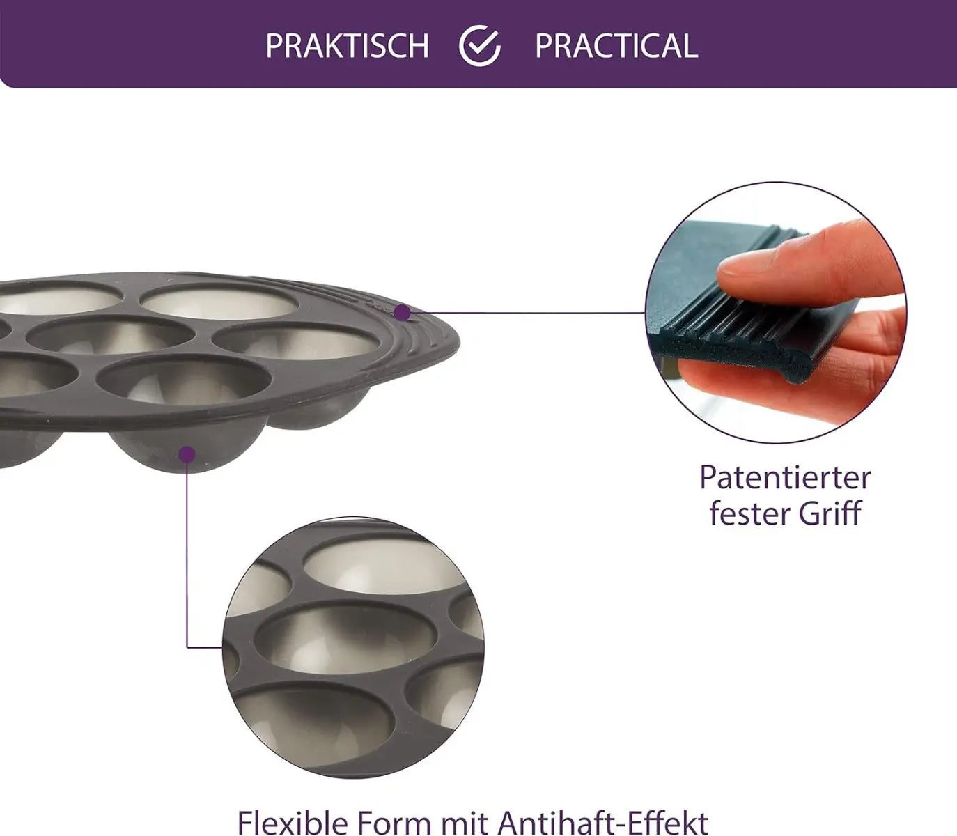 Mastrad legt Wert auf Sicherheit und Gesundheit, daher ist die "Halbkugel-Backform Silikon" frei von BPA, was Ihnen die Freiheit gibt, gesunde und sichere Speisen zuzubereiten. Die Reinigung gestaltet sich denkbar einfach: Ein kurzes Abspülen unter warmem Wasser oder ein Gang in die Spülmaschine genügt, um die Form bereit für ihren nächsten Einsatz zu machen.