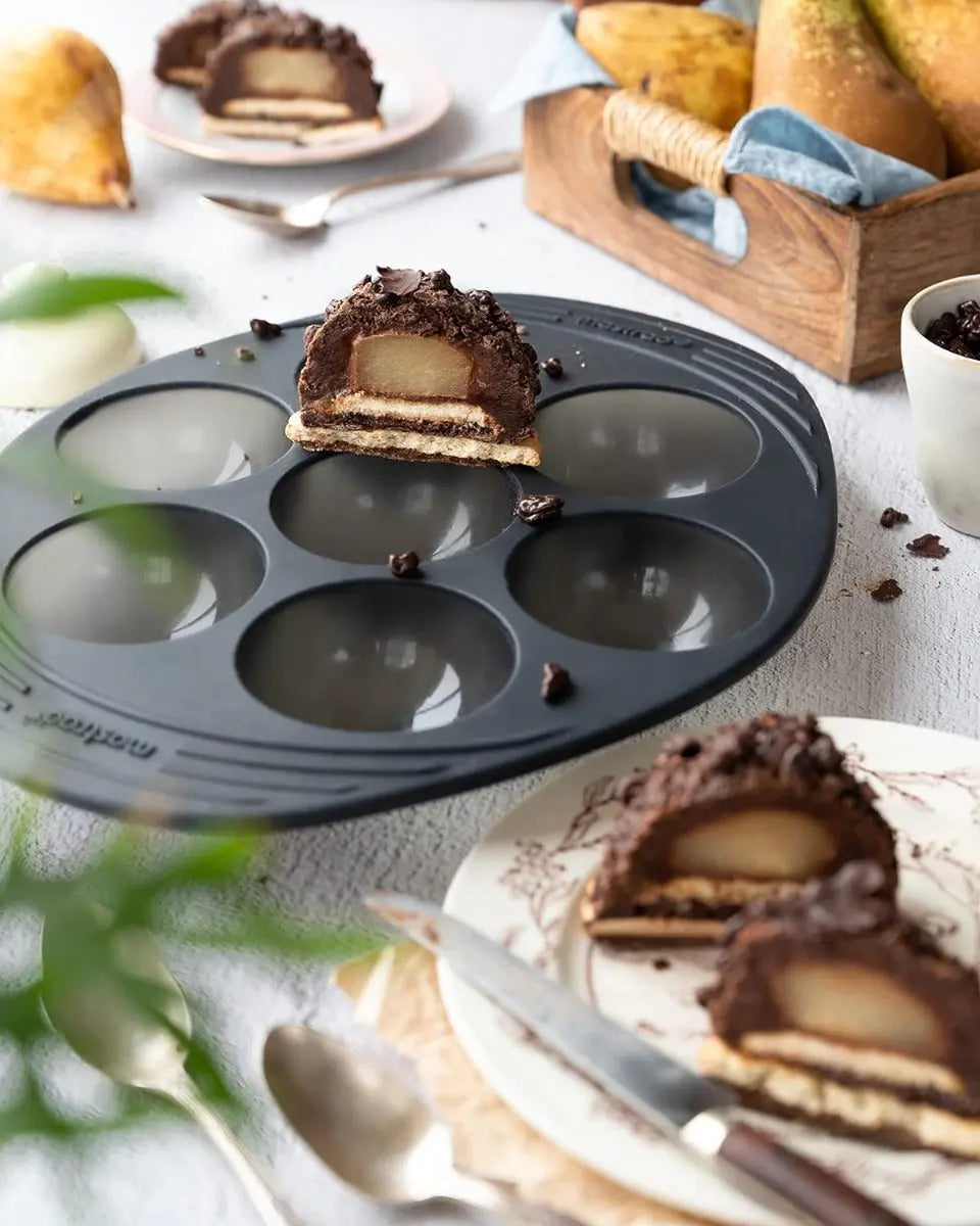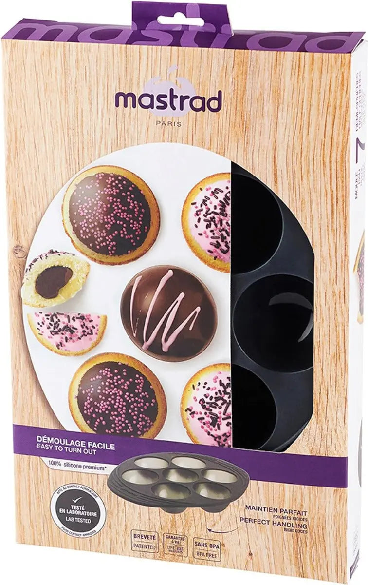 Die "Halbkugel-Backform Silikon" von Mastrad ist eine innovative Lösung für alle, die sich kreativ in der Küche austoben möchten. Diese speziell entworfene Backform umfasst sieben Halbkugel-Vertiefungen und eignet sich perfekt für die Zubereitung von einzigartigen Desserts, Pralinen, kleinen Kuchen oder sogar gefrorenen Köstlichkeiten.