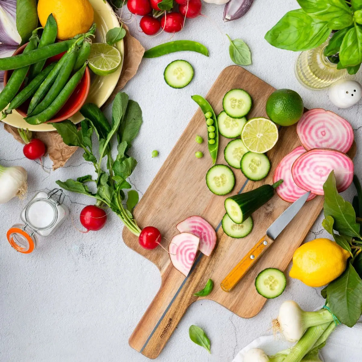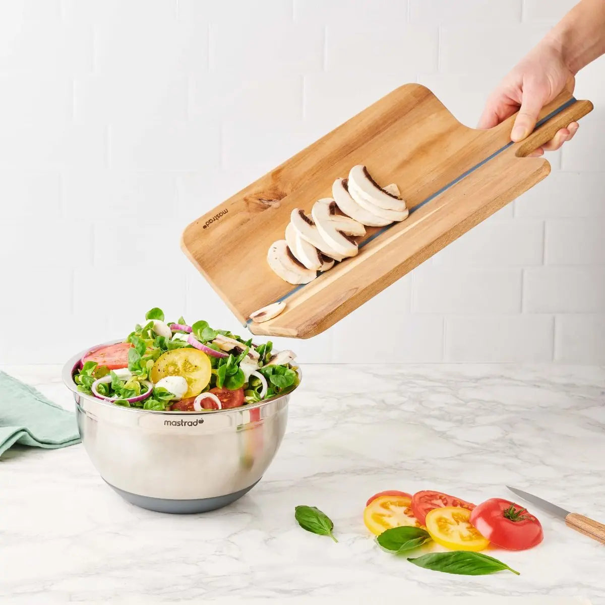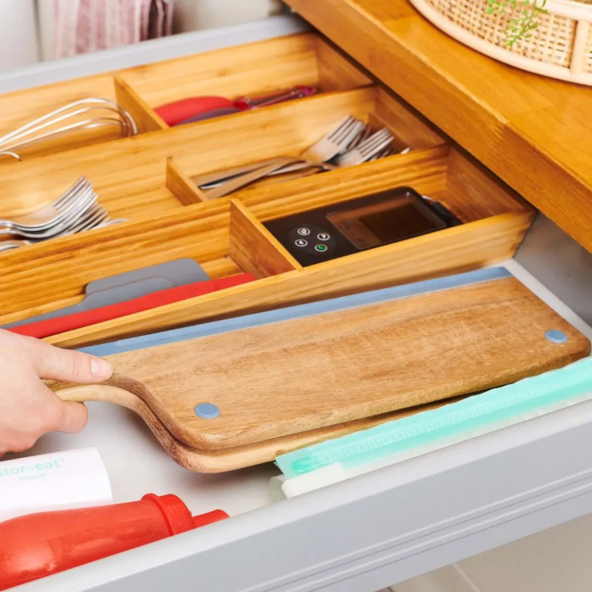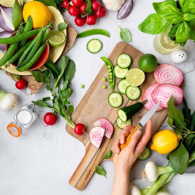 Das faltbare Schneidebrett aus Holz ist ein vielseitiges Küchenwerkzeug, das nicht nur durch seine Funktionalität, sondern auch durch sein elegantes Design besticht. Gefertigt aus widerstandsfähigem Akazienholz, bietet es eine hohe Resistenz gegen Temperaturschwankungen und schont die Klingen Ihrer Messer. Das großzügige Format von 42 x 20 cm ermöglicht es, problemlos Gemüse, Fleisch oder Fisch zuzubereiten. Eine Besonderheit dieses Schneidebretts ist seine Faltbarkeit, die es besonders praktisch macht: Nach dem Schneiden kann das Brett einfach zusammengeklappt werden, um die Zutaten sauber und ohne Kleckern in den gewünschten Behälter zu geben. Zudem ist das Brett platzsparend und kann leicht in einer Schublade verstaut werden. Dank seiner ästhetischen Optik und der langlebigen Materialien ist es sowohl ein funktionales als auch stilvolles Accessoire in jeder Küche.