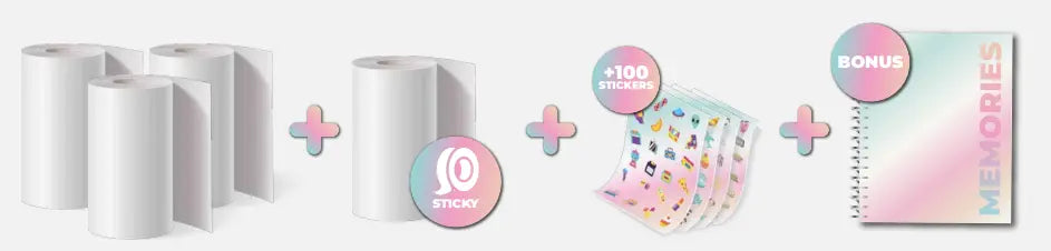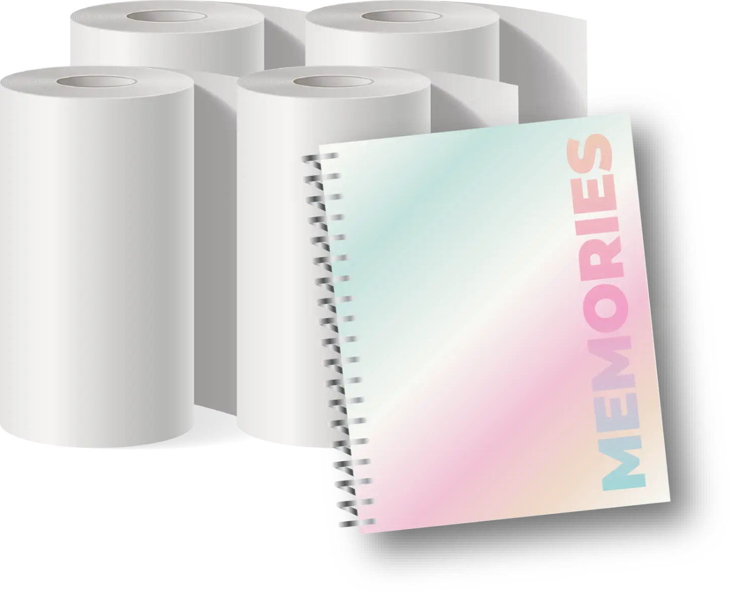 Keine Sorge, wir bieten Nachfüllpackungen an, mit denen du bis zu 300 Fotos drucken kannst, sowie ein anpassbares Fotoalbum mit deinen Fotos und Stickern (separat erhältlich)!